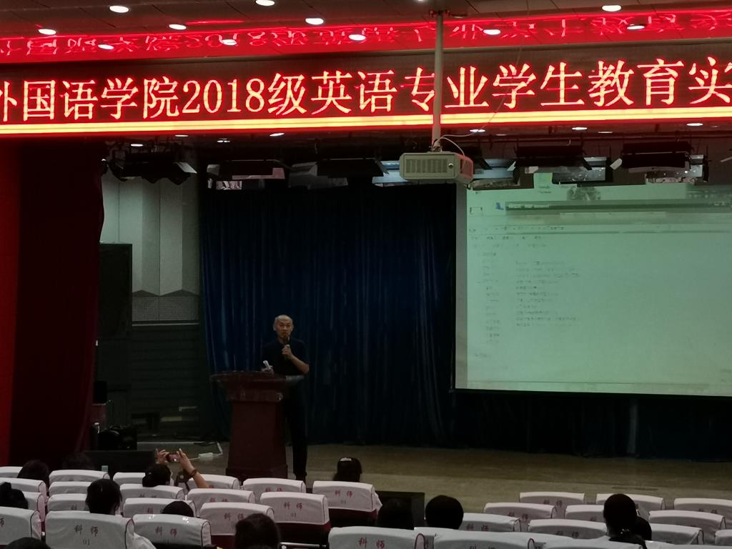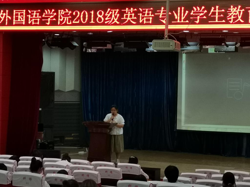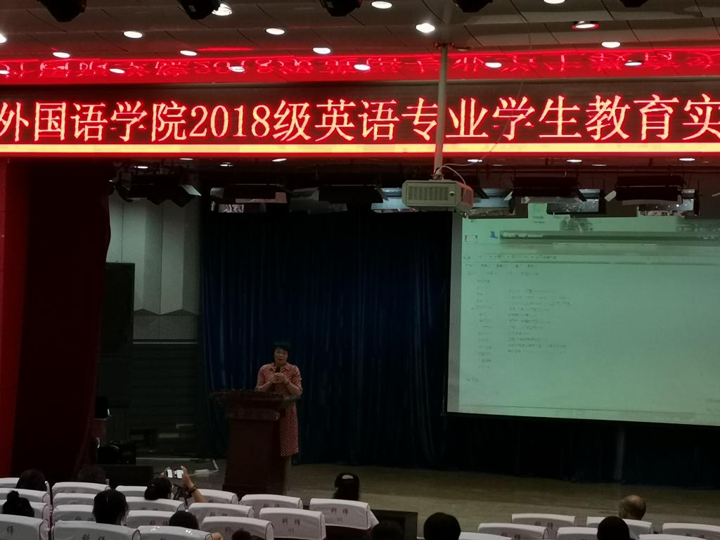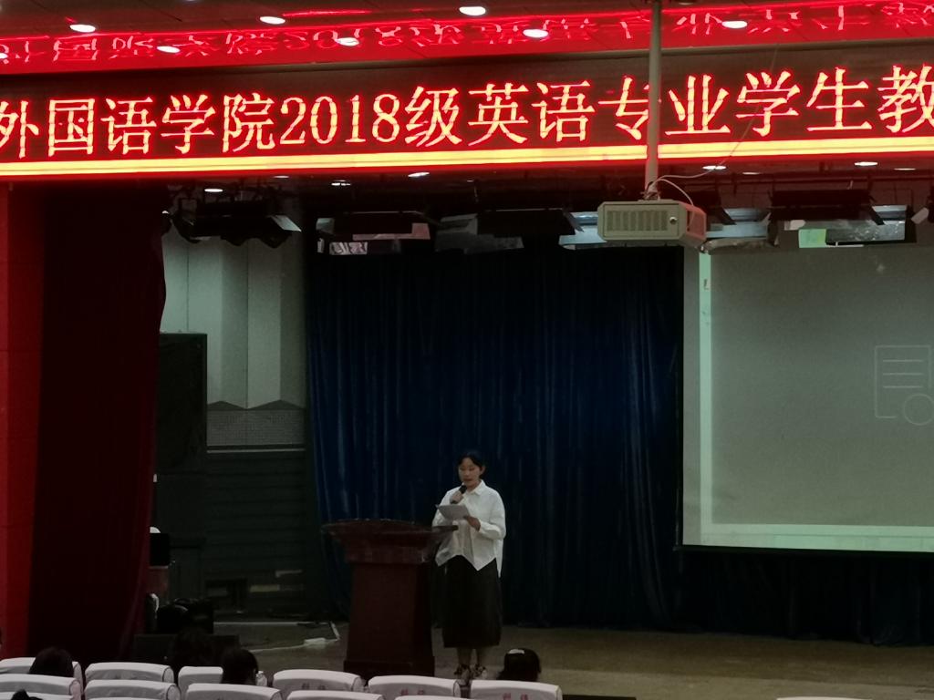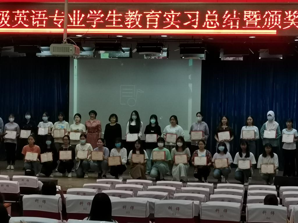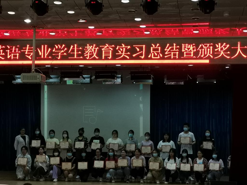 太阳成tyc33455cc英语2018级学生教育实习总结暨颁奖大会于2021年9月16日在太阳成集团tyc33455ccwww开发区校区报告厅顺利举行,参加大会的学生包括英语2018级全体学生共122人,2021级新生代表共40人,同时,太阳成tyc33455cc邵丽君书记、崔海英院长、罗学锋副院长和范学荣副院长,以及部分实习指导教师出席了大会。