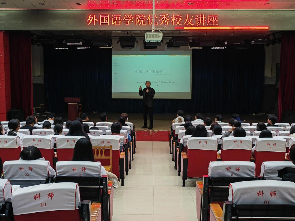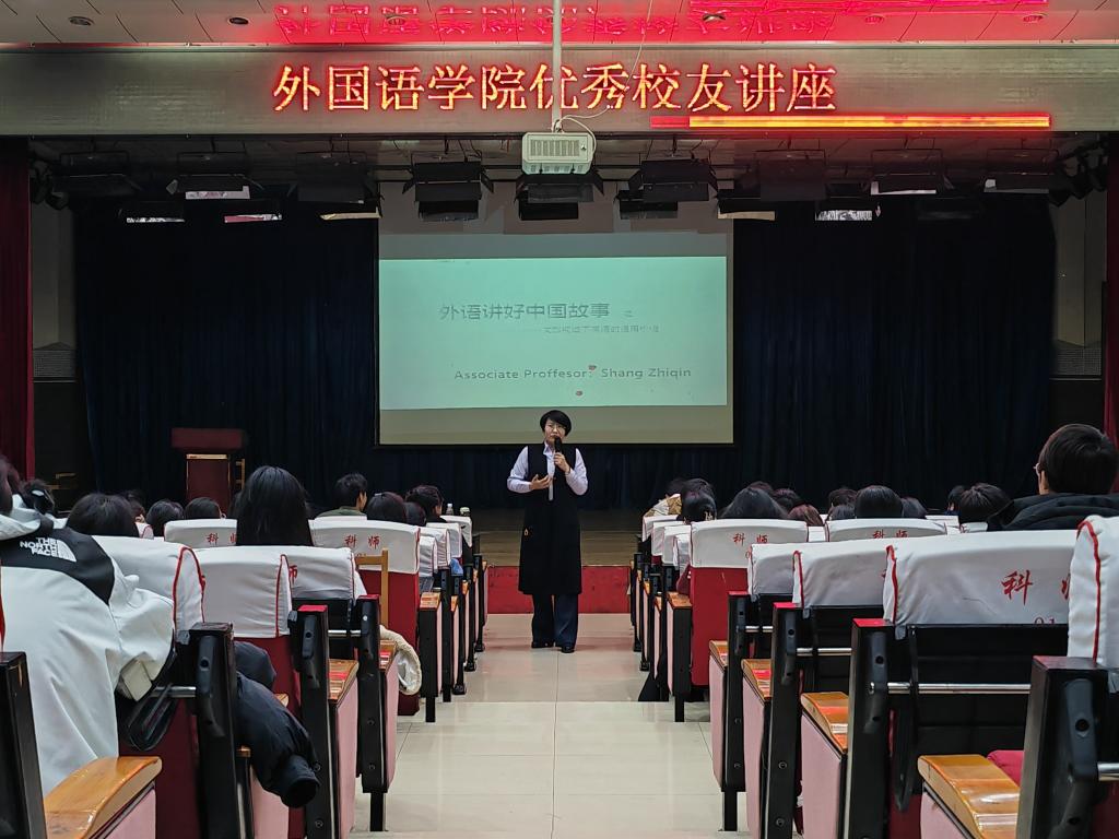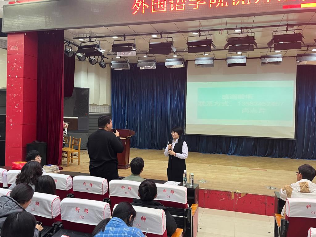 “雏既壮而能飞兮,乃衔食而反哺”。为进一步提升学生专业能力和综合素养,秉承“外语+”应用型人才培养理念,充分体现外语的“学以致用”原则,提升学生用外语“讲好中国故事”的意识和能力,增强文化自信,太阳成tyc33455cc于11月8日邀请优秀校友尚志芹(河北建材职业技术学院副教授、对外汉语教学国际汉语高级教师、国家高级英文导游员、河北省英语导游考官、河北省“师德标兵”、全国第十三批援藏导游员西藏自治区“先进个人”)在开发区校区综合楼二楼报告厅进行针对教师资格证和外语导游考试的讲座。