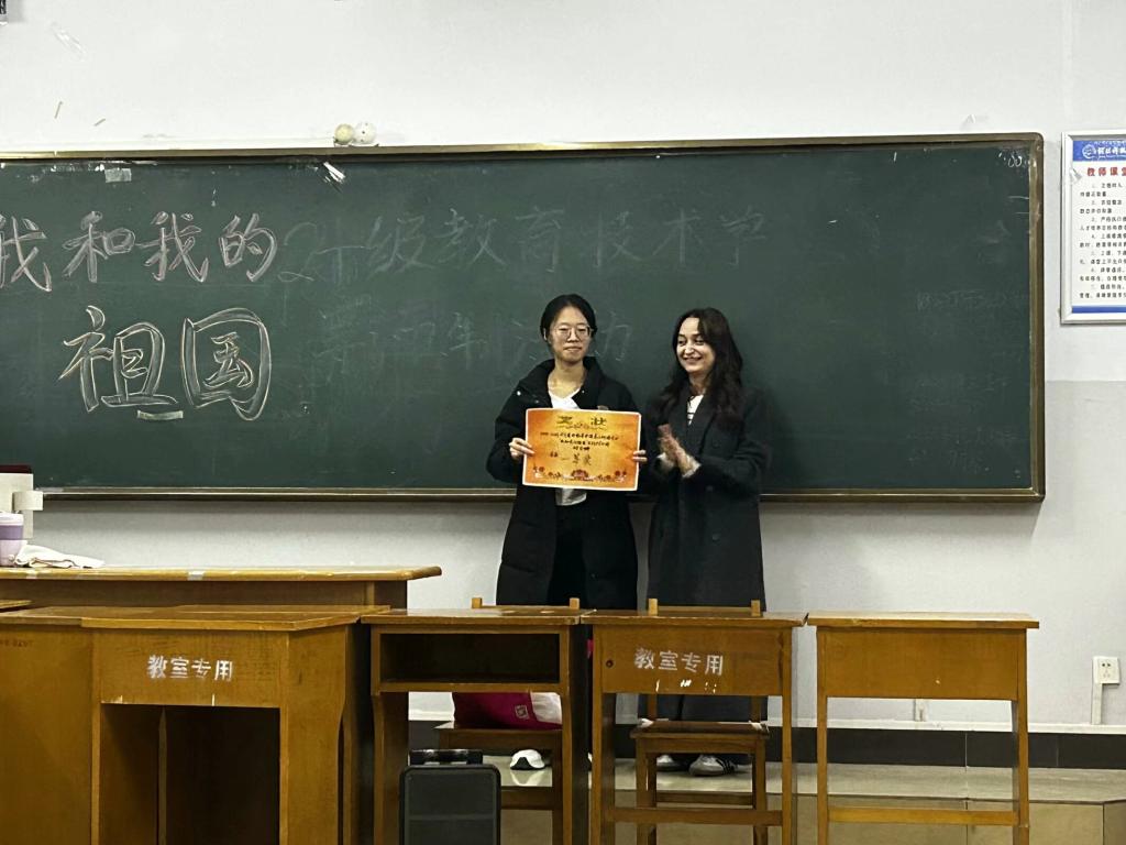 在所有同学都展示完毕后,活动也逐渐迎来尾声。经过评委老师的评审,刘文姗等25位同学分别获得了一、二、三、等奖和优秀奖。颁奖结束后,外教Silvia和几位留学生还给同学们带来了Bella Ciao歌曲表演。