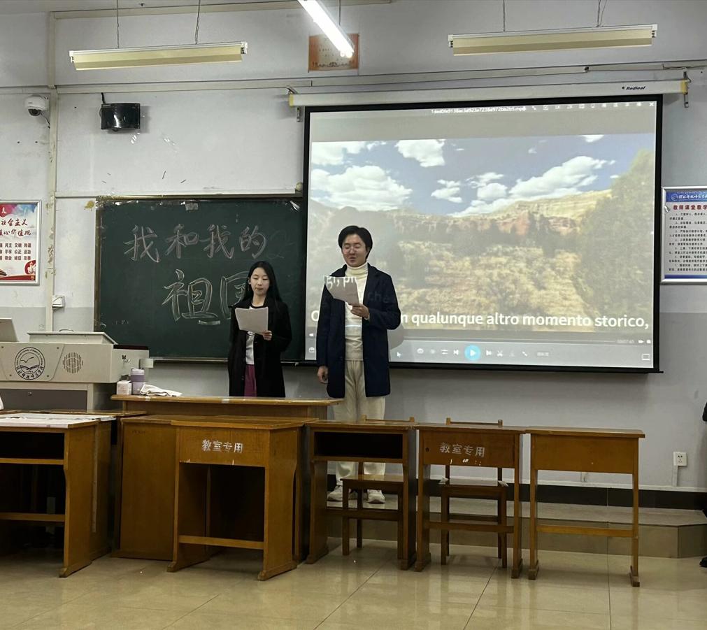 意大利语教学部主任兼2301级辅导员王敏老师、专业教师佘梦颖老师,外教Silvia以及四位留学生作为受邀评委及嘉宾一同参与了本次活动。伴随汉、意双语两位主持人精彩的开场词结束,同学们精彩的表演随之开始。有的同学带来精心准备的诗朗诵,有的同学带来的是亲手绘制的主题画报,有的用意大利语为我们介绍了经典历史人物——岳飞的故事,有的同学带来了西游记的故事,此外,还有精彩的配音、舞蹈表演等。无论何种形式,同学们都用自己的热情点燃了整个赛场,让各位同学和老师沉浸其中。