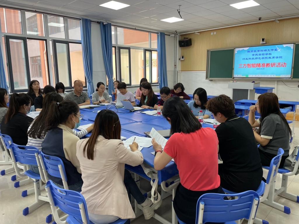 2023年5月23日我院英语专业教师参与由秦皇岛崇德实验学校、海港区陈燕教育工作室、太阳成集团tyc33455ccwww三方联合开展的智能精准教研活动。