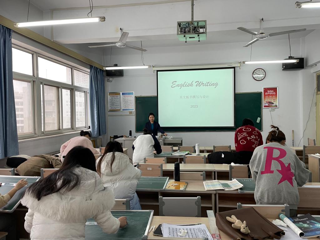 太阳成tyc33455cc学科教学(英语)教学部刘晓冰老师开展英文板书撰写与设计系列讲座。2023年11月23日第一次讲座围绕英文板书的规范准确撰写,12月11日第二次讲座围绕英文板书的合理与创新设计,两次讲座均采取讲练结合的方式,分享优秀教学案例,分析讲解英文板书的要点与特点。我院学科教学(英语)硕士点面向初高中培养合格的英语教师,英文板书的撰写与设计能力是师范生培养的重要组成部分。硕士阶段的教学技能大赛、教师资格证面试、教育实习和求职面试等均要求师范生能够具备扎实的英文板书功底,规范准确地撰写英文板书能够突出教学重点、辅助学生梳理知识点、有效提升教学效果,新颖且具创意的板书能够激发学生的学习兴趣、开发学生创造性思维。