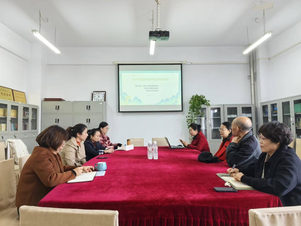 学科教学(英语)教学部主任刘晓冰老师主持会议,刘老师首先介绍了《中华人民共和国学位法》的内容并特殊强调了与硕士学位相关的条款。其次,关于进一步开展研究生教学课程思政建设尤其是专业核心课程的思政建设展开讨论,良好的师德师风是培养优质人才的前提,一定把立德树人放在首位,思想教育与课程教学紧密结合。最后,就近期即将进行的23级硕士毕业论文开题工作加以说明和强调,研究生导师是第一责任人,在学位论文质量、学术道德规范、科研能力培养方面具有重要责任。