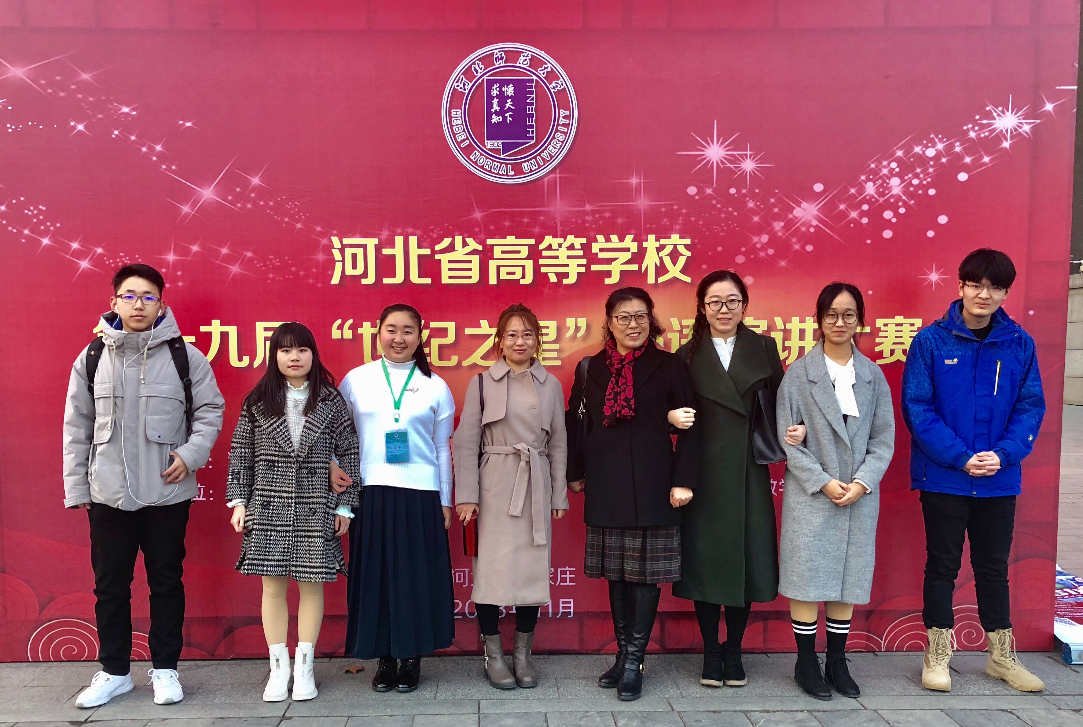 2018年11月17-18日,由河北省教育厅、河北省高校外语教学指导委员会主办的河北省高校第十九届“世纪之星”外语演讲大赛在河北师范大学隆重举行。来自全省103所高校的411名优秀选手参加了为期两天的激烈角逐,我校参赛师生成绩斐然。其中太阳成tyc33455cc西班牙语专业17级孙红辰荣获非英语专业组一等奖,英语专业17级郑云萱荣获英语专业组二等奖,应用英语专业16级赵斯琪荣获高职组二等奖,张艺、于开拓老师荣获青年教师组三等奖,西班牙语专业17级薛昊瑞、英语专业17级裴鑫鑫分获三等奖。