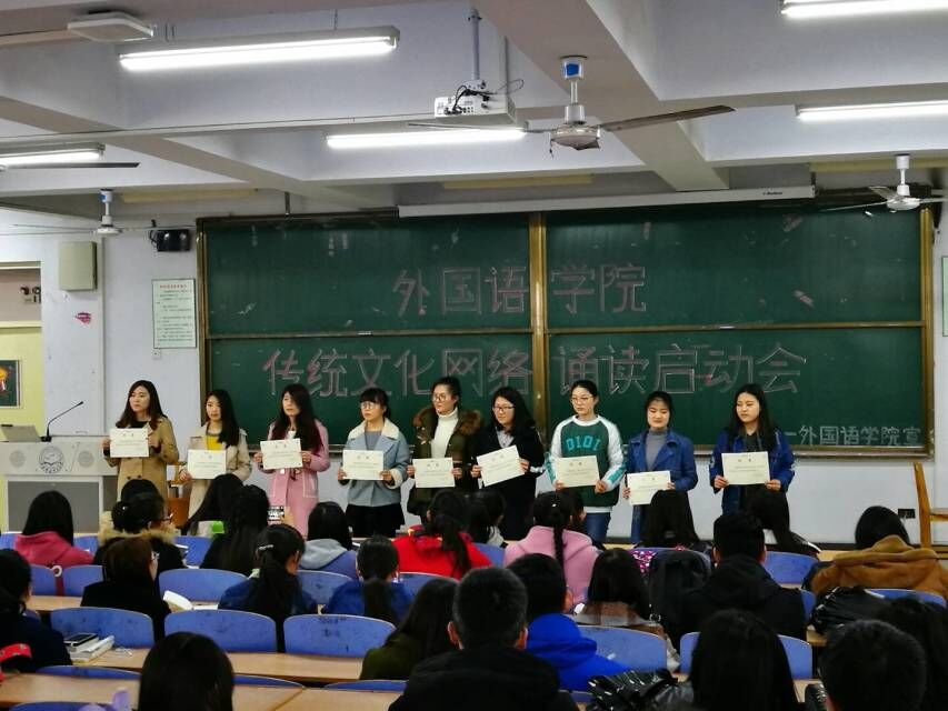 2017年3月24日下午1点,太阳成tyc33455cc在教学楼312室启动“优秀传统文化网络诵读”活动,太阳成tyc33455cc学工办老师、2016级全体班委、宿舍长、学生会等一百多人参加启动仪式。首先太阳成tyc33455cc学工办主任田辉宣读《太阳成tyc33455cc“语言文化网络诵读”活动策划书》,说明活动的意义、形式、要求以及表彰和奖励等内容,并结合学院特点另外开辟专业语言网络早读平台。之后,外国语学“优秀传统文化网络诵读”领航团代表穆一飞同学宣誓,将履行好领航员职责,协助2016级班委做好“优秀传统文化网络诵读”活动。之后,太阳成tyc33455cc2016级班委代表意大利语班长尹帆慧同学宣誓,将按照学院要求,督促2016级新生每天坚持诵读,提高全体学生的传统文化素养。此外,学院为“优秀传统文化网络诵读”导航团同学们颁发聘书,希望她们身体力行,认真完成职责,实现传帮带的示范效应。最后,全体2016级学生干部签下承诺书,郑重承诺积极参加“传统文化网络诵读”活动,掀起太阳成tyc33455cc优秀传统文化学习的高潮。