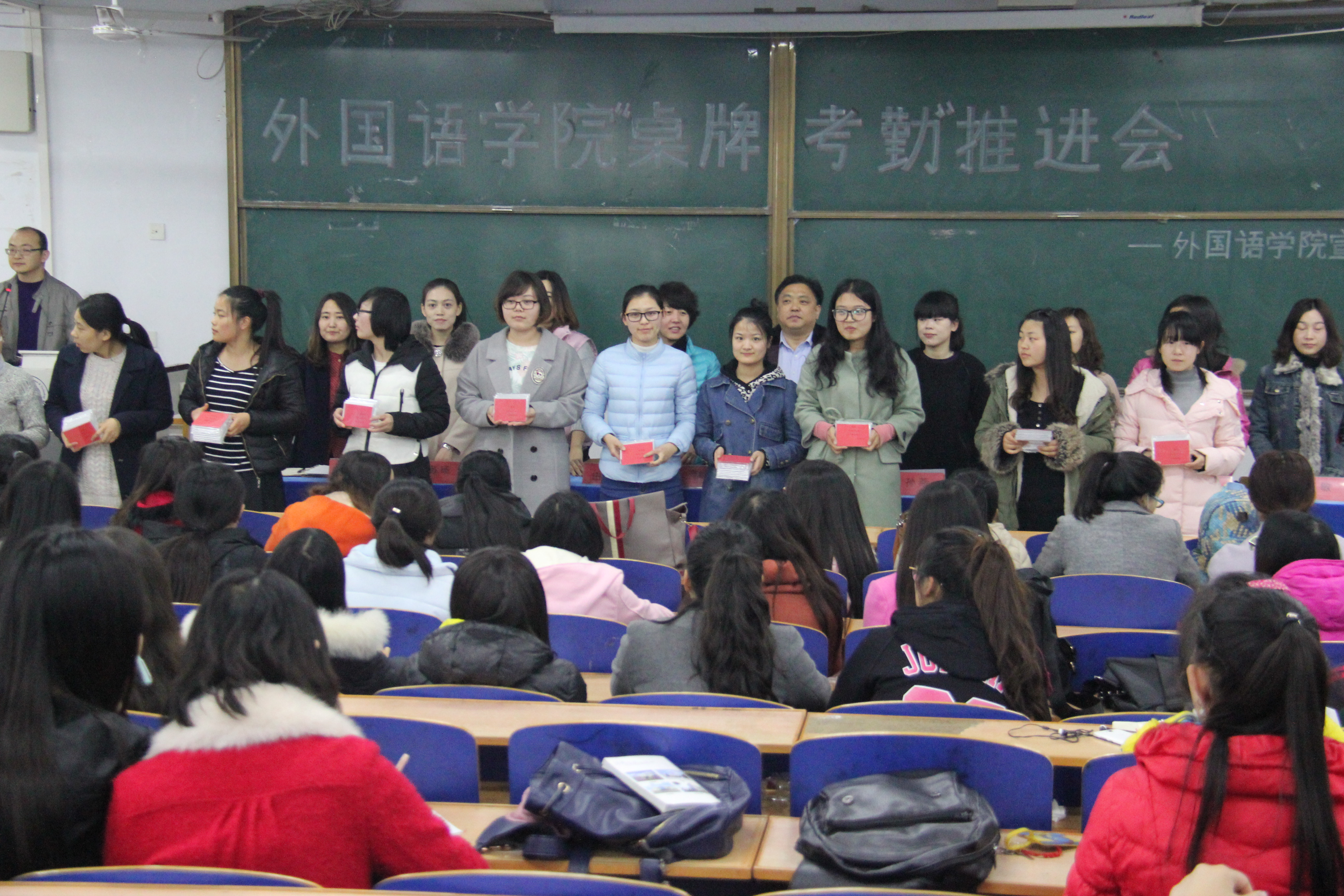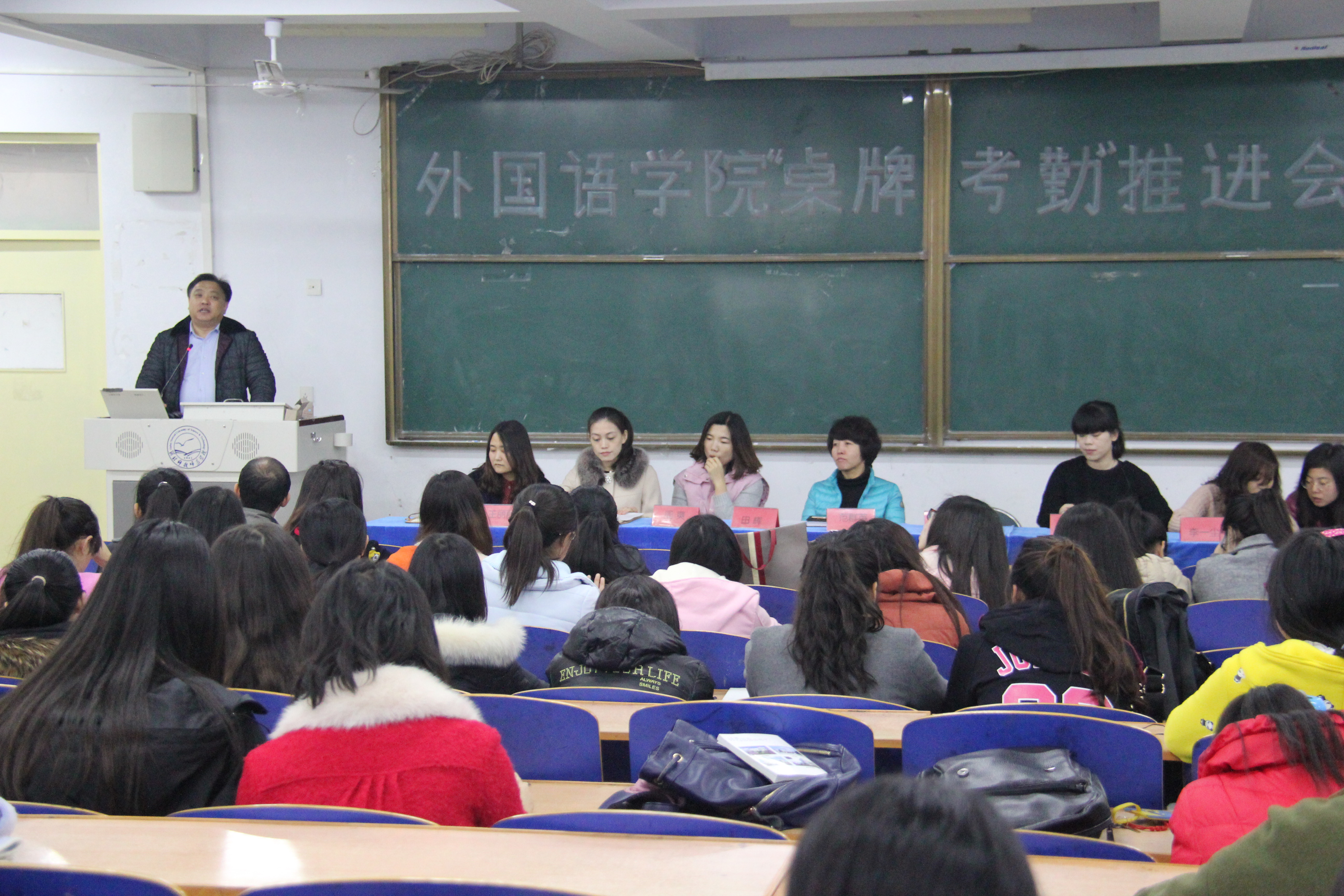为响应学校“三风建设”要求,强化课堂考勤,优化课堂秩序,提升课堂教学效果,太阳成tyc33455cc于2016年3月3日中午在教学楼212召开了推进课堂桌牌管理动员会。学院党委书记白雪松、副书记副院长范群英、全体辅导员及近160名学生干部和学生代表参加了会议。