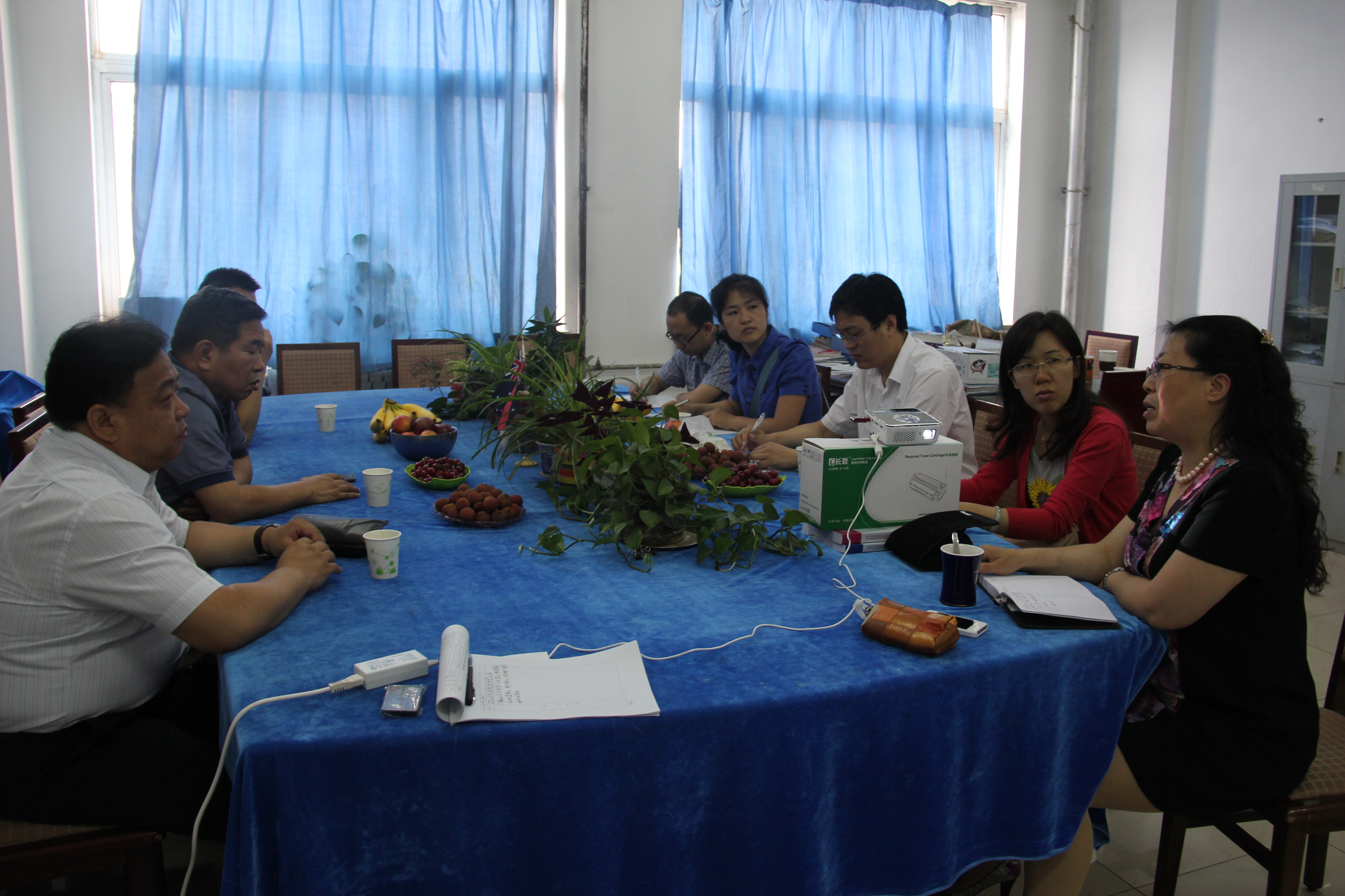 6月20日上午,石家庄学院太阳成tyc33455cc大学英语教研室一行四人来到我校太阳成tyc33455cc进行交流学习。太阳成tyc33455cc党委书记白雪松、院长邵丽君、副院长游建民、副院长崔海英和公共英语教研室副主任韩庆山参加了交流学习会。