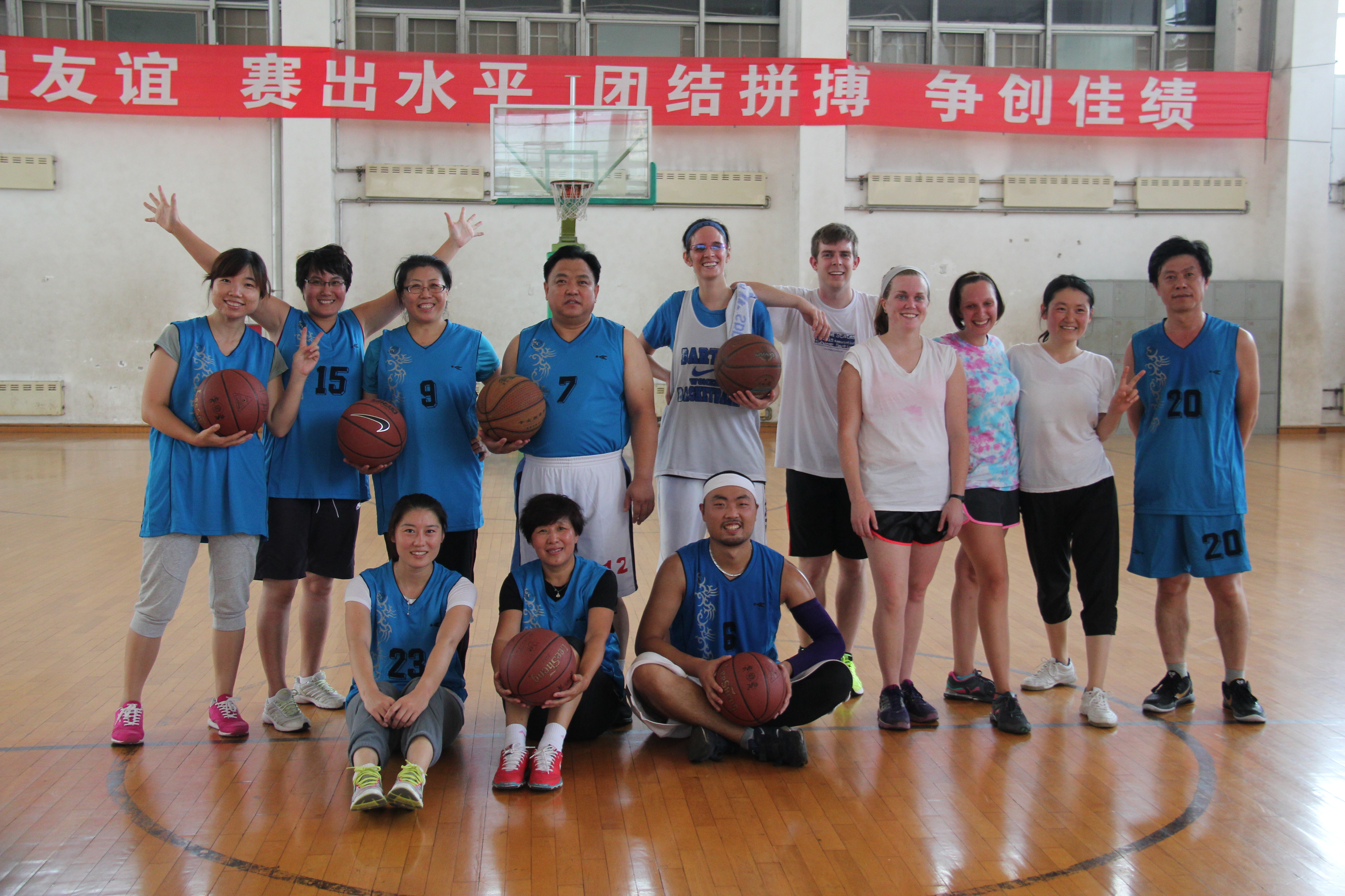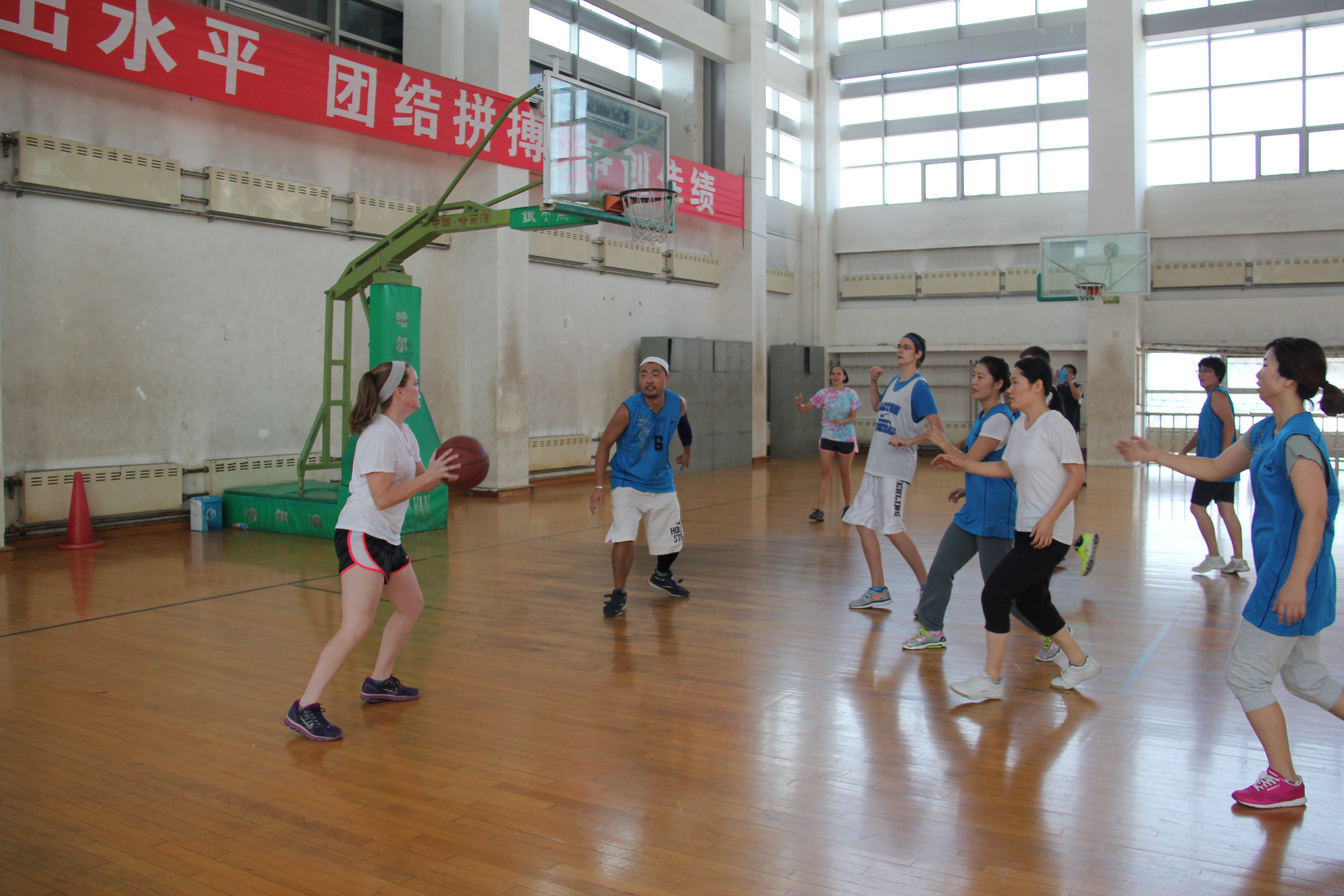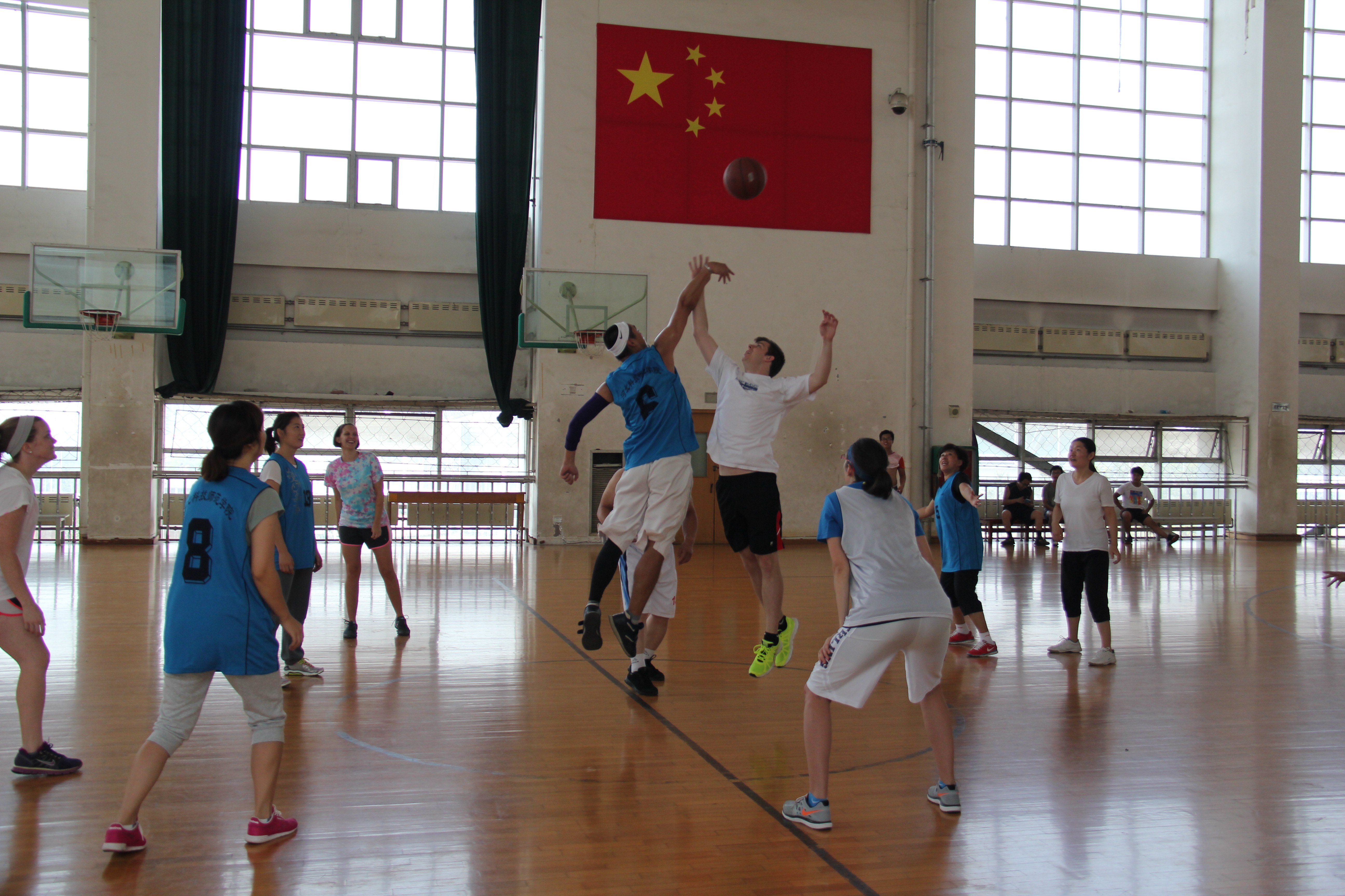 9月13日上午,国际合作与交流处与太阳成tyc33455cc联合举办了中外教师篮球友谊赛。国际合作与交流处处长东方阳、学生处副处长宋文华、太阳成tyc33455cc党委书记白雪松、太阳成tyc33455cc院长邵丽君、四名英语外教及多名教师参加了比赛。