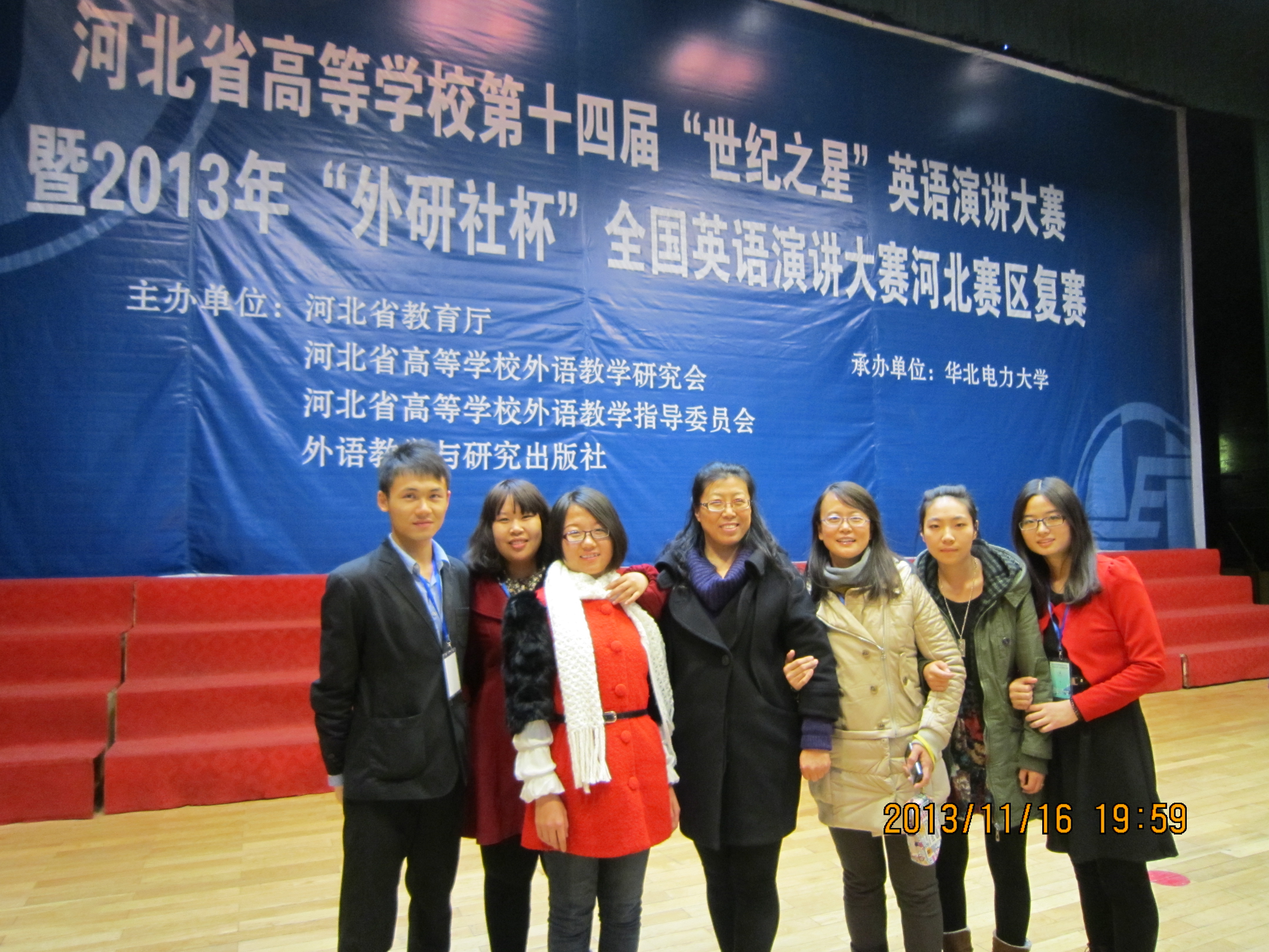 2013年11月15日至17日,河北省高等学校第十四届“世纪之星”英语演讲大赛暨2013年“外研社杯”全国英语演讲大赛河北赛区复赛在华北电力大学举行,全省84所高校400余名选手参加了此次比赛。我校共选拔5名学生参加决赛。我校太阳成tyc33455cc英语本科专业的武瑶瑶、林映同学凭借扎实的英语综合运用能力和机敏的应变能力获得英语专业组一等奖,杨心如同学获二等奖,段雅然和王鑫同学以流利的英语表达分别获得高职高专组二等奖和三等奖。获奖学生在比赛中成绩显著,为我校赢得了荣誉。