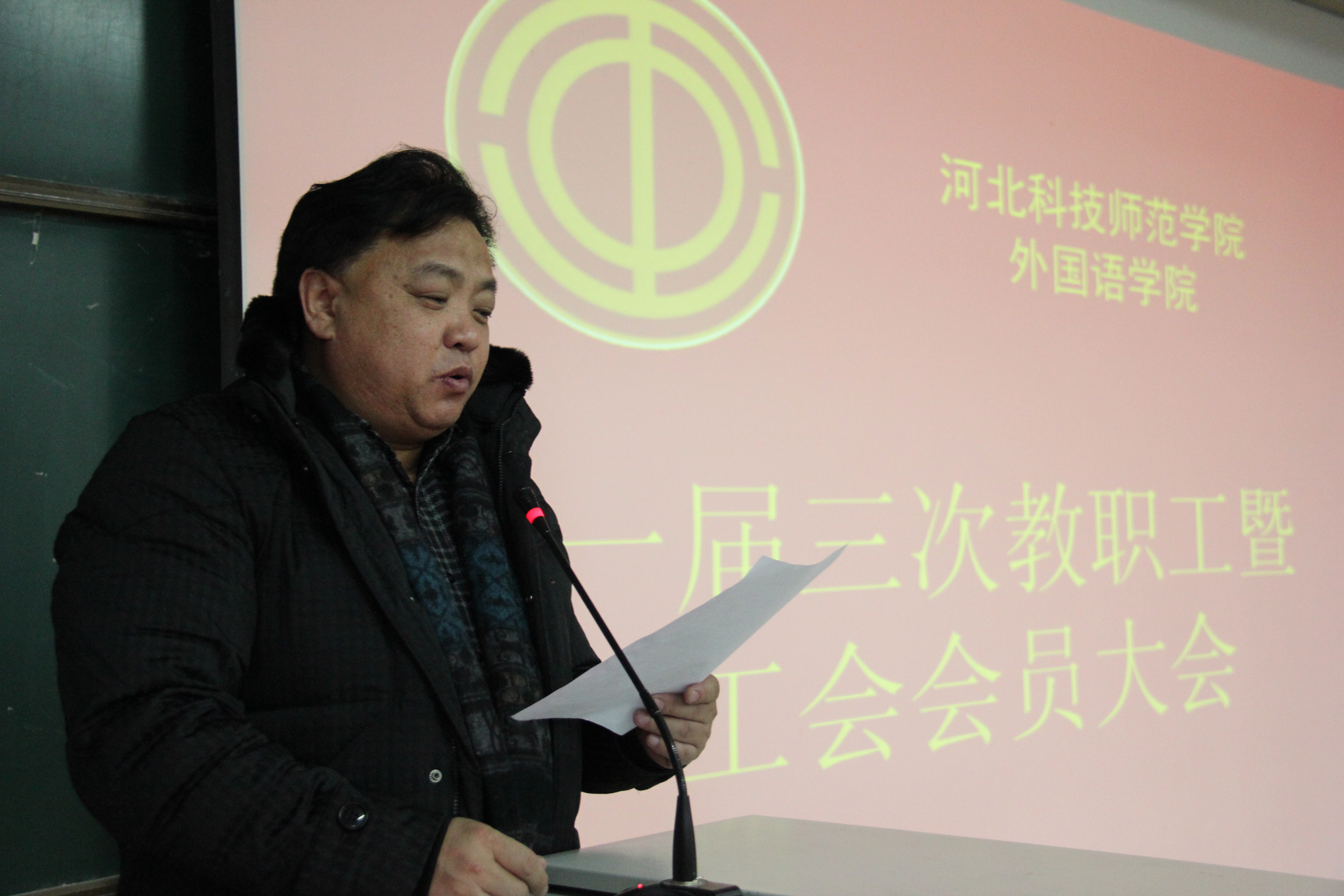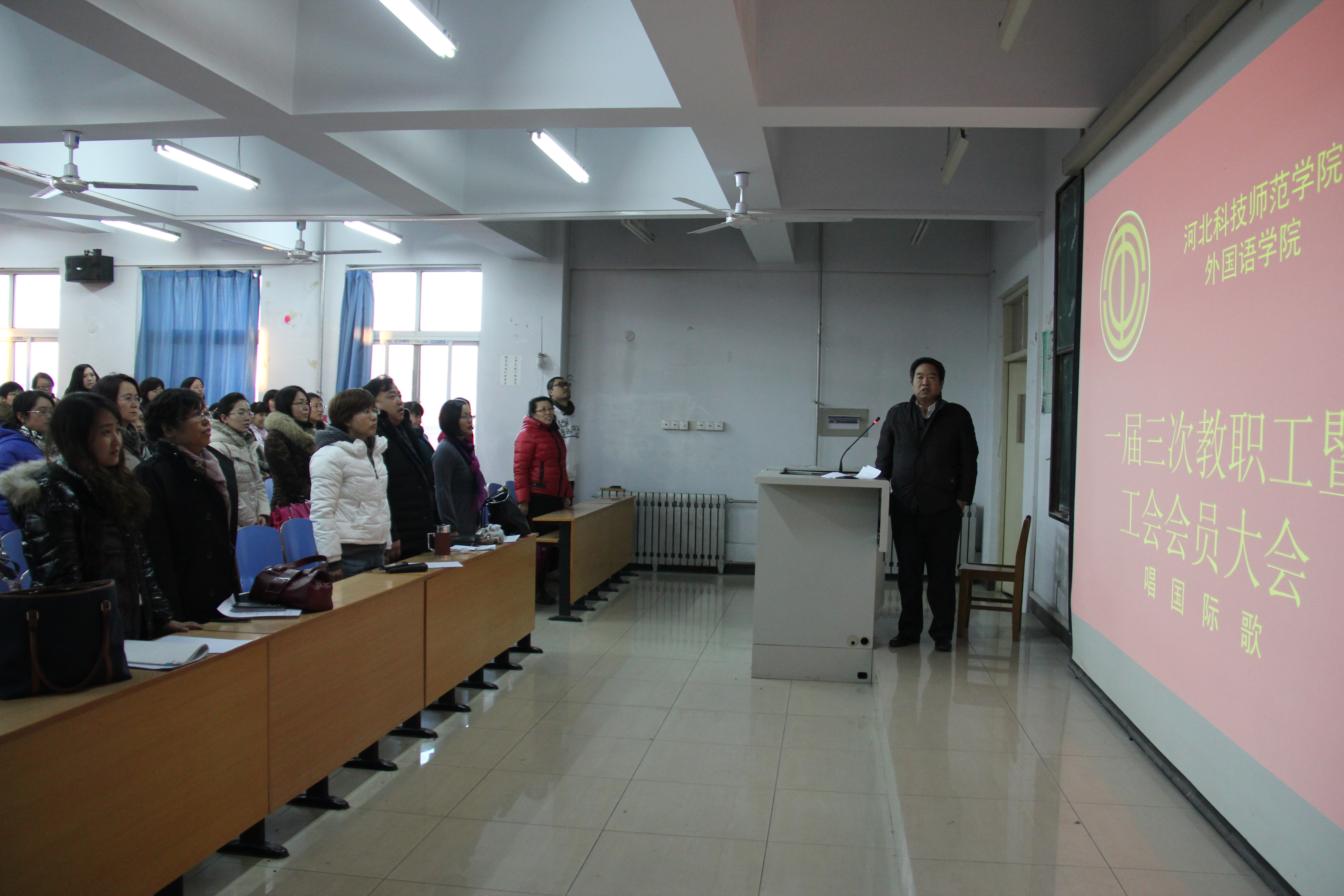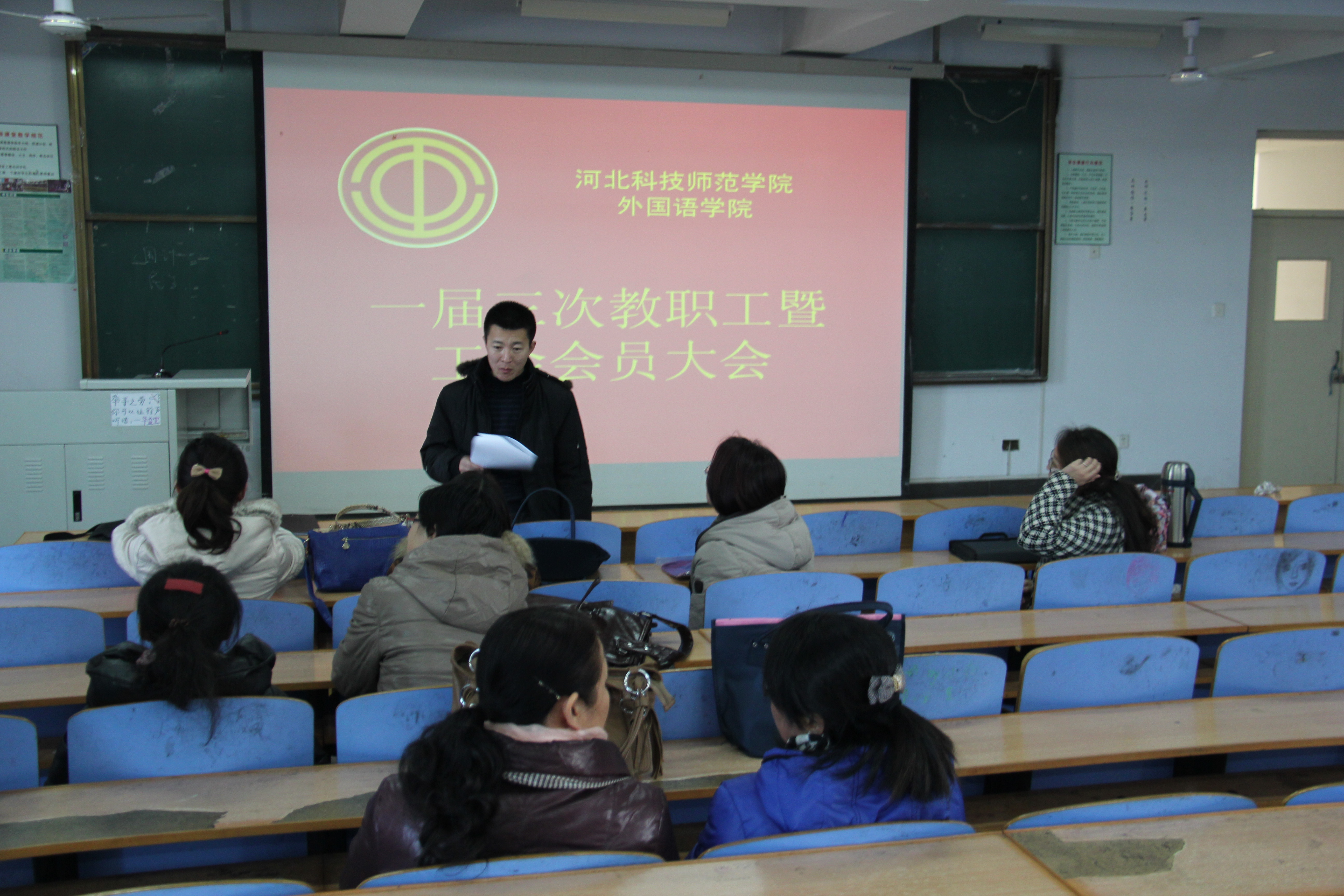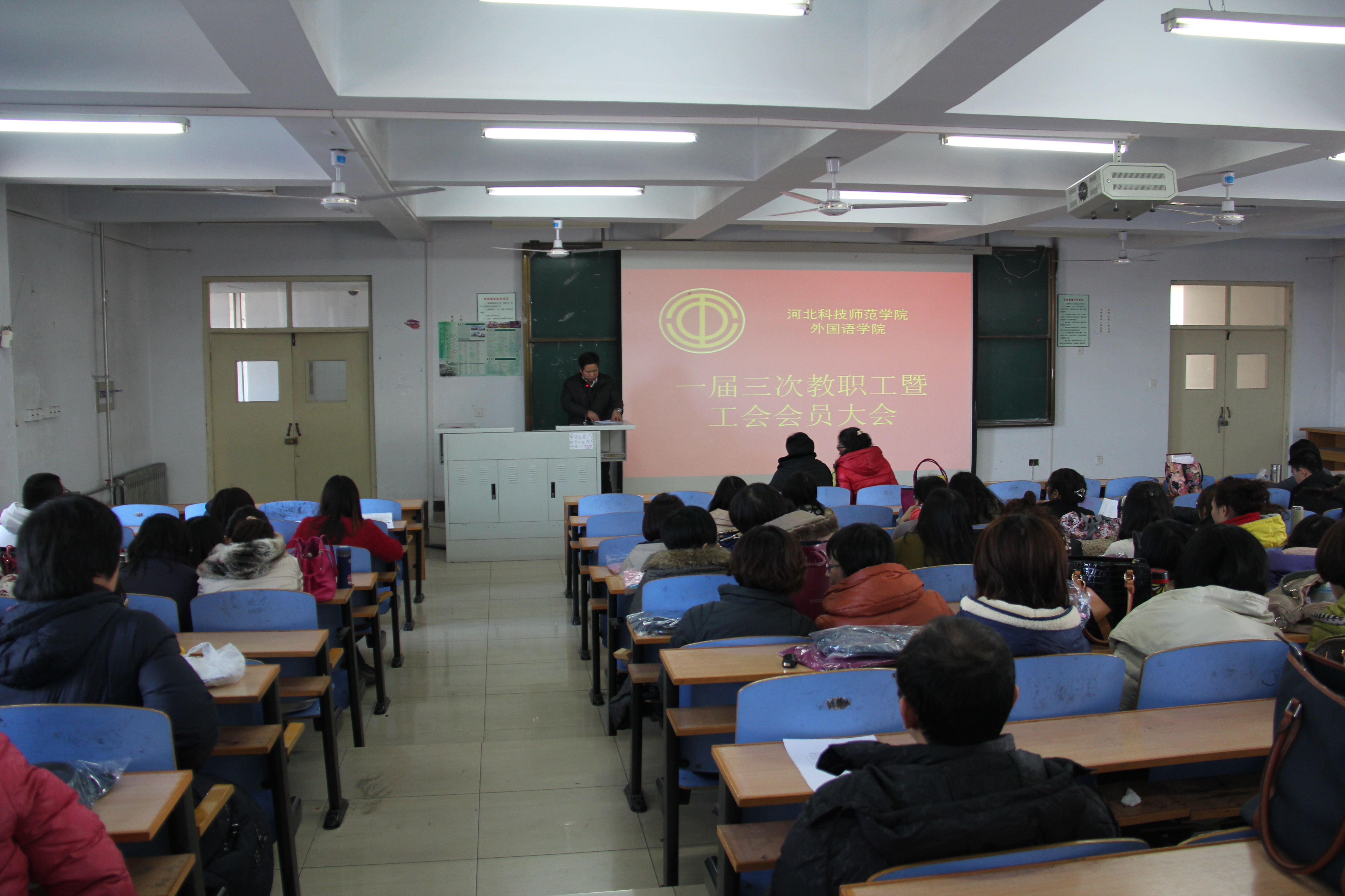 2013年12月26日下午2点,太阳成tyc33455cc在开发区校区综合楼312室召开一届三次教职工暨工会会员大会。太阳成tyc33455cc全体教职工参加了大会。