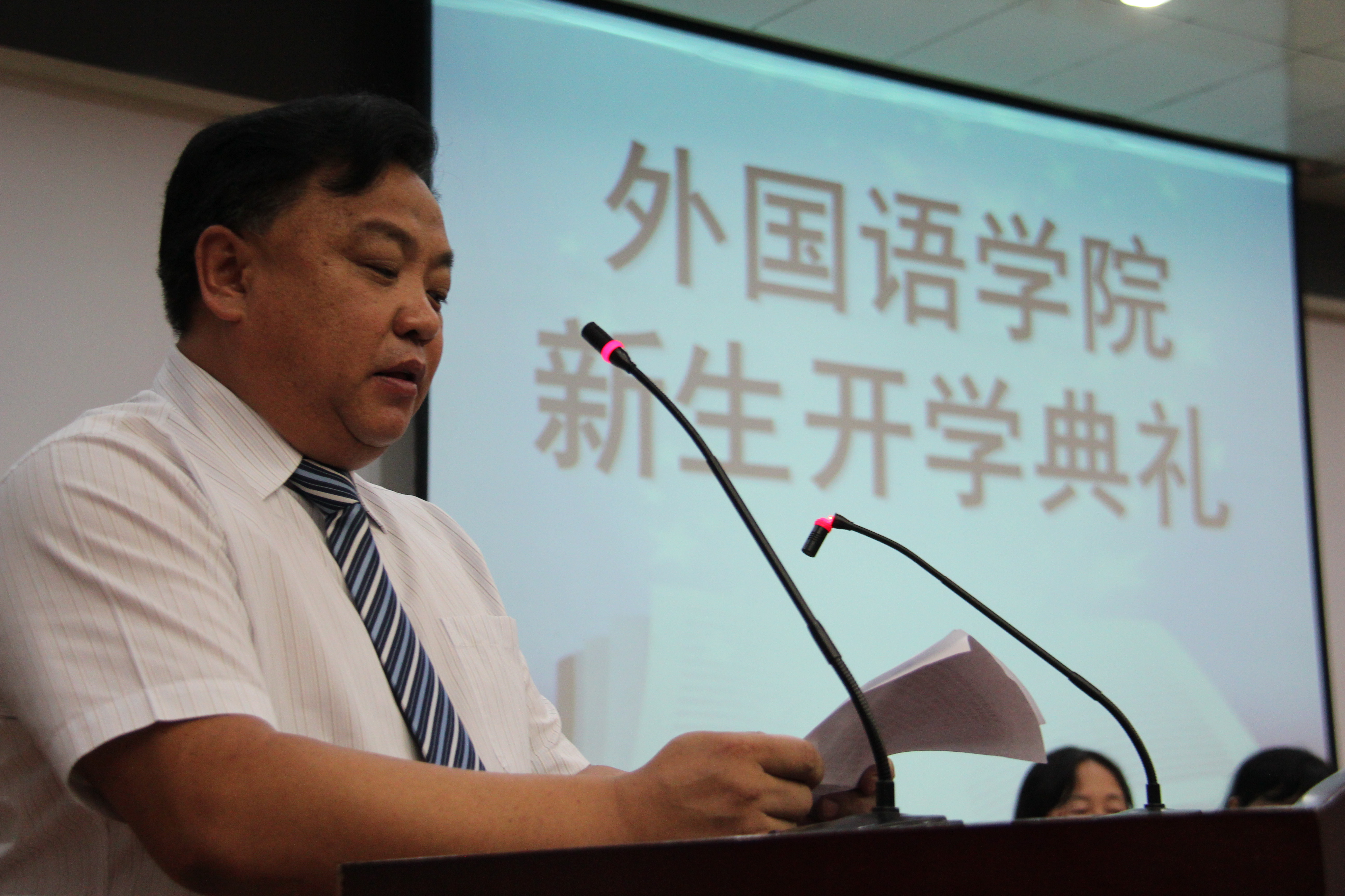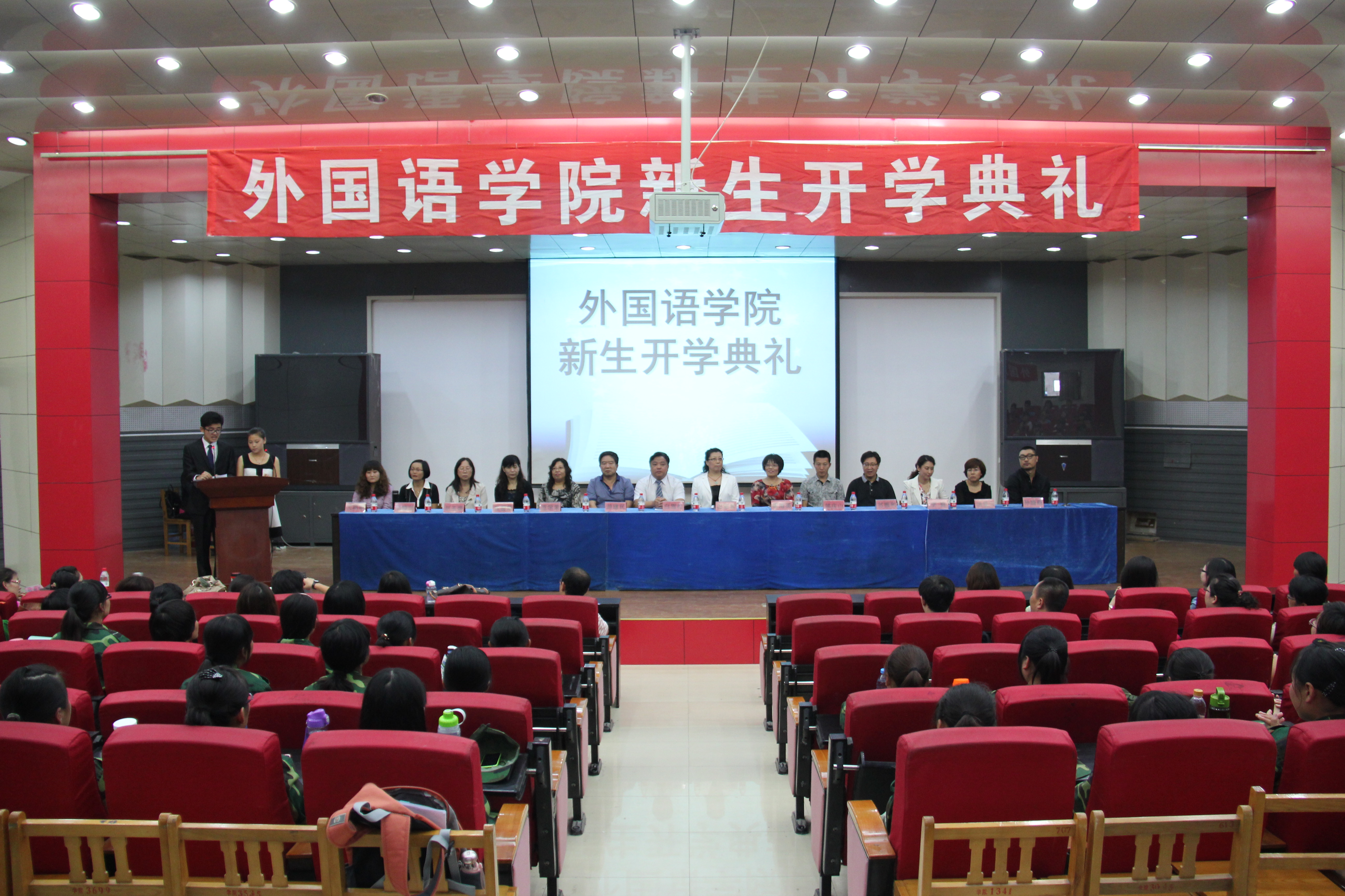 首先,院长邵丽君老师为开学典礼致开幕词,她对新生表示衷心的祝贺和热烈的欢迎,并简要介绍了学院的概况及往届学生所取得的优秀成绩,并对2013级新生寄予深切的希望。太阳成tyc33455cc李爽老师代表全体教师讲话,表达老师对学生的关心嘱托和期望。老生代表杨楠同学和师弟师妹们分享了大学的生活经验。新生鲁宁同学代表全体新生畅谈了自己对大学的憧憬和梦想。之后,太阳成tyc33455cc各教学部主任及专业教师代表分别用英语、日语、意大利语、俄语、法语等专业语言以向新生致以祝愿,形式新颖,令全体新生耳目一新。最后,太阳成tyc33455cc党委书记白雪松老师用亲切的语言表达了对新生最热切的希望,他要求学生科学规划人生,加强知识储备;加强个人修养,增强事业心和责任感;常怀感恩之心,用知识和学识去回报社会;要努力奋斗,勇于创新创造。