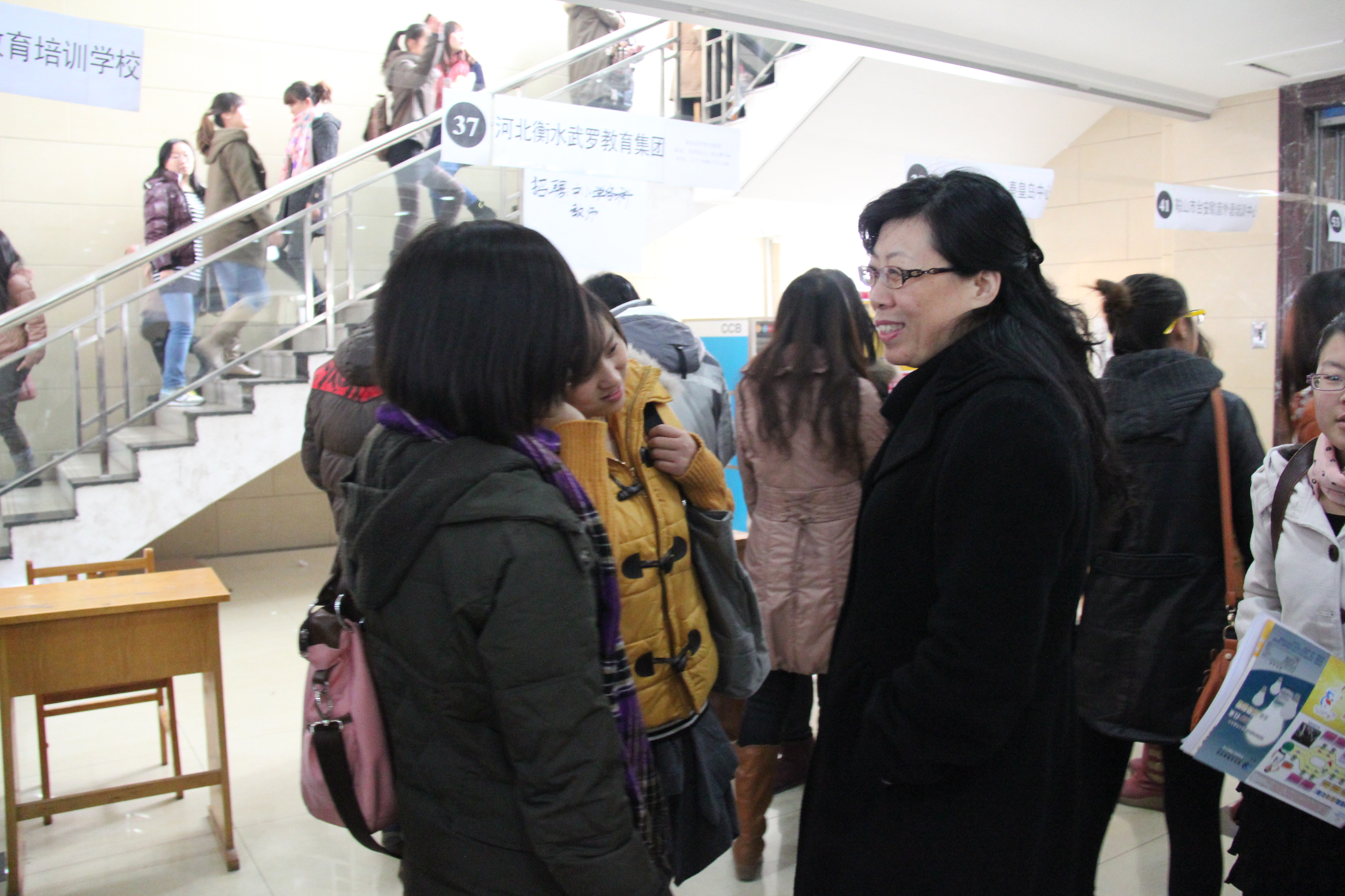 11月25日,太阳成tyc33455cc400余名毕业生参加了招聘会,积极了解用人单位招聘情况、投放简历参加面试。太阳成tyc33455cc党委书记刘朝晖、院长邵丽君、副院长游建民等学院领导亲临现场视察、指导招聘会就业工作,与企业及学生亲切交谈,向企业了解招聘岗位情况,并鼓励学生要勇于面对挑战和竞争。太阳成tyc33455cc毕业班辅导员、教研室主任教师等也纷纷来到招聘会,了解企业需求、调研用人市场,现场指导学生、推荐优秀毕业生等。学工办也积极为用人单位招聘提供现场服务。另外,北京华博教育培训中心等用人单位在我校组织了专场宣讲、面试、和试讲等活动。据不完全统计,太阳成tyc33455cc共有2人签约,80余名毕业生和用人单位达成就业意向。