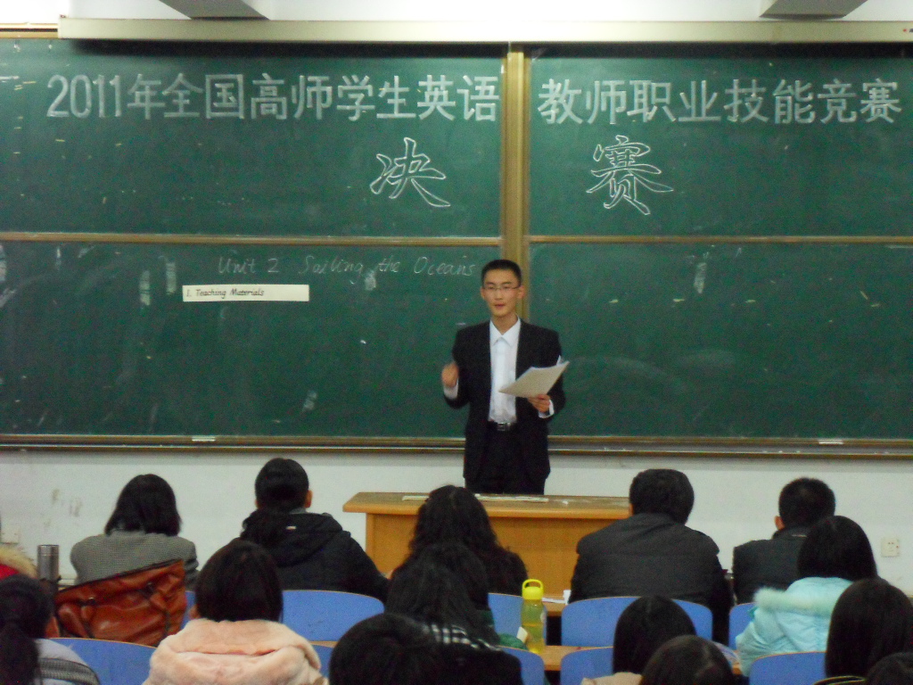 2011年全国高师学生英语教师职业技能竞赛于12月10日下午两点半在开发区312教室成功举行。本次比赛邀请太阳成tyc33455cc副院长游建民、副院长崔海英及赵建平、王力、韩庆山老师担当评委。比赛分两个环节,共13位选手进入到决赛。所有选手在遵循公平、公正原则的基础上抽签决定参赛顺序,并随机抽取题目参加比赛。各位选手用流利的英语、丰富的肢体语言及多种多样的讲课方式展现了她们的英语运用能力和临场应变能力,赢得了阵阵掌声,台下同学也积极配合,气氛十分活跃。认真负责的五位评委老师公正客观地为各位选手打分,并做了精彩点评,使各位选手和现场观众都受益匪浅。本次活动的成功举办为选手们提供了展示自我风采的平台和锻炼提升的机会。附比赛结果: