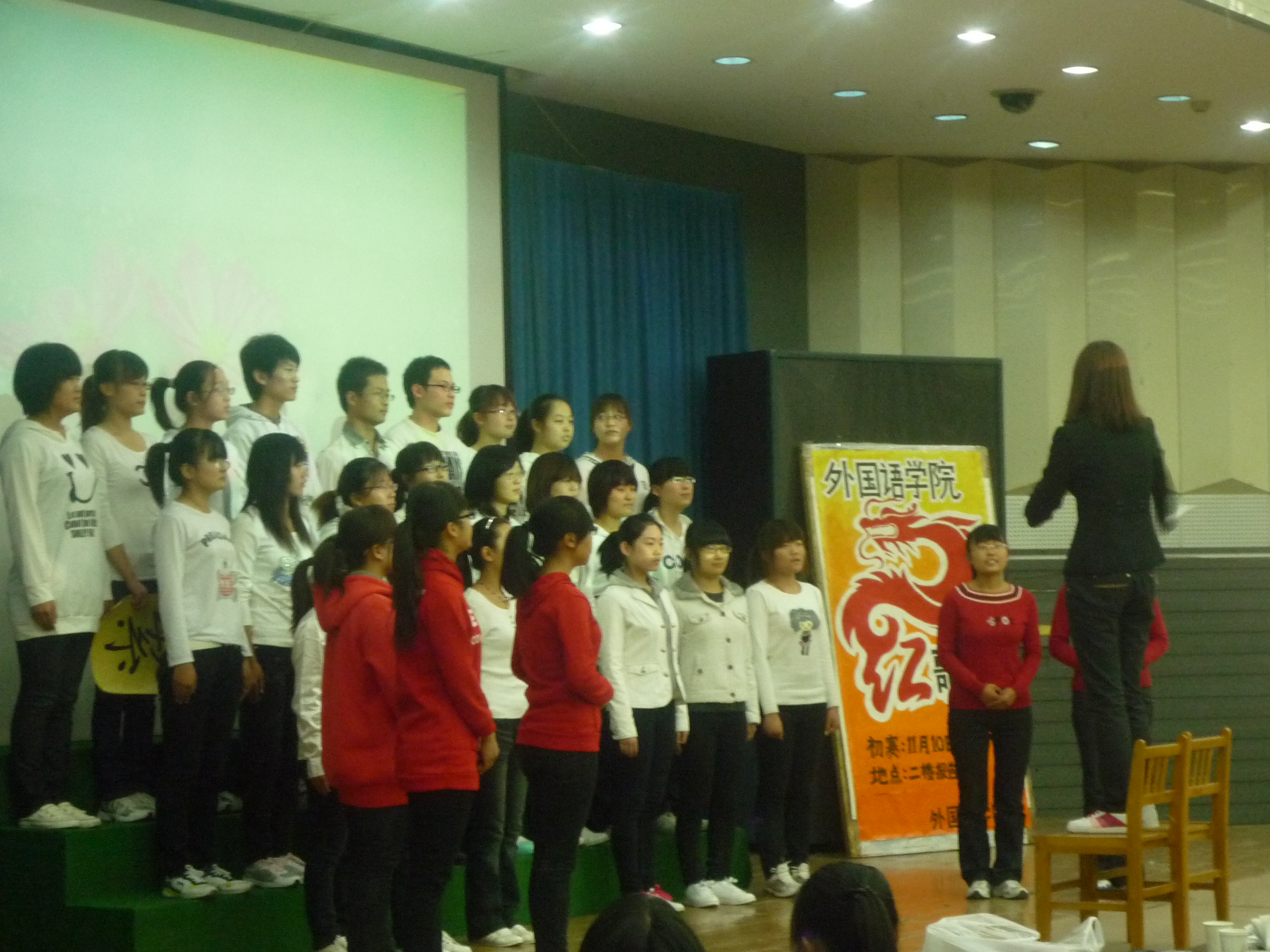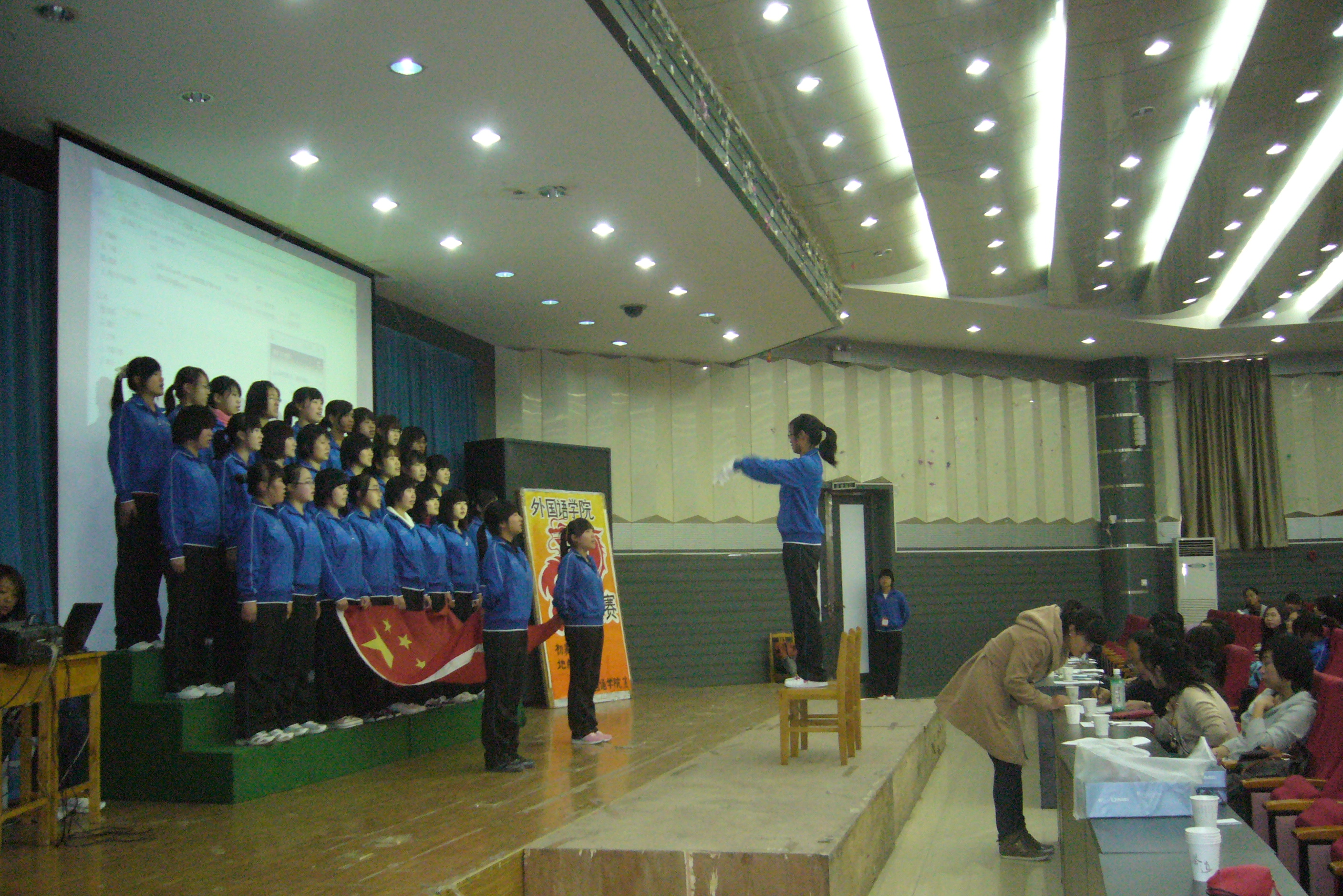 太阳成tyc33455cc于2011年11月10日在综合楼二楼报告厅举办了“唱校歌,颂祖国”红色经典大合唱初赛。太阳成tyc33455cc全体10级、11级共23个班级参赛。学工办老师和各班辅导员担任了此次比赛的评委。