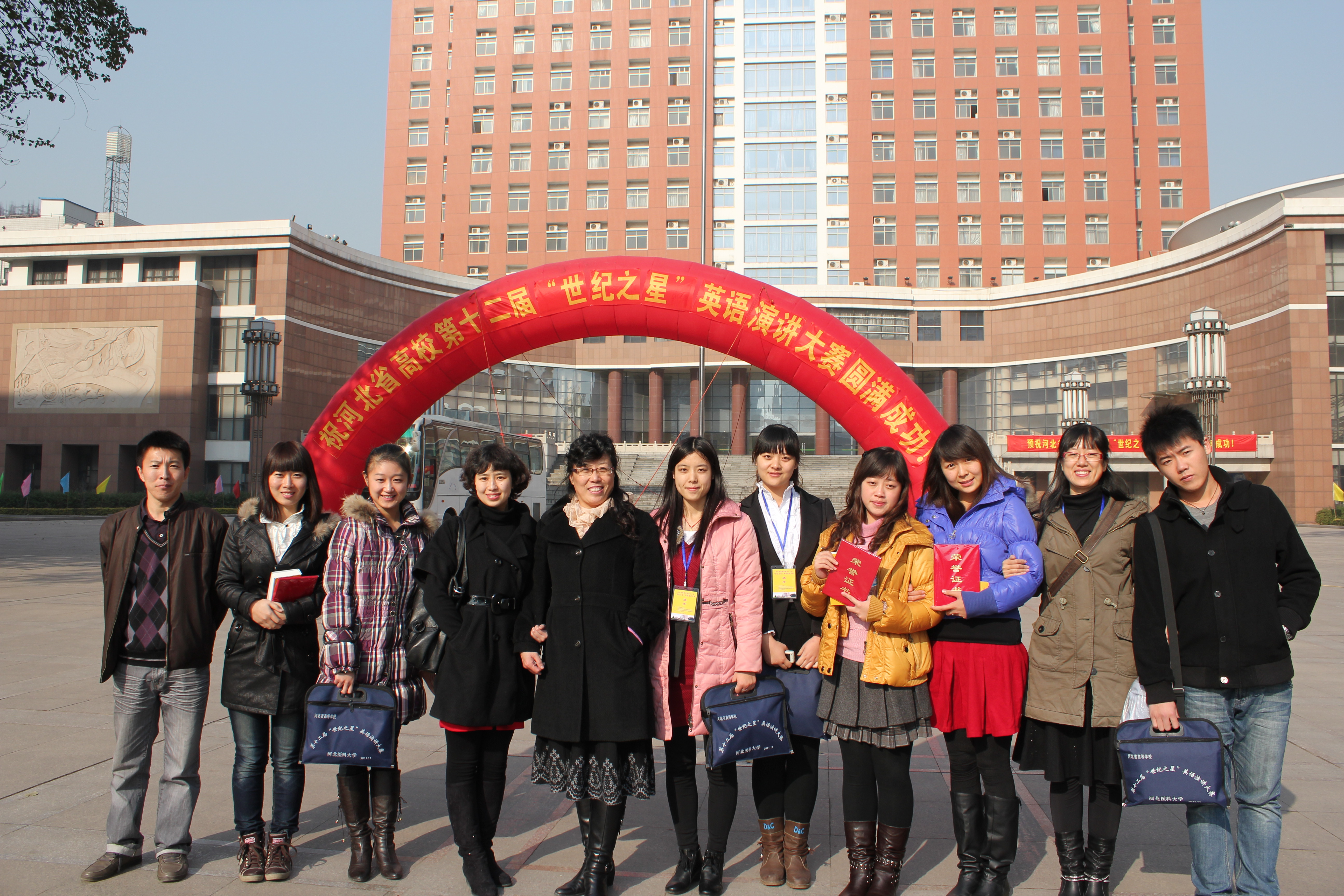 2011年11月18日至20日,河北省高等学校第十二届“世纪之星”英语演讲大赛在河北医科大学举行,全省169所院校369名选手参加了此次比赛。大赛共分英语专业学生组、非英语专业学生组、高职高专学生组和青年英语教师组。我校共派出了8名学生和2名教师参赛。决赛中,太阳成tyc33455cc吴贺平老师及边丹丹老师语言流畅、应变自如,表现出扎实的专业功底,在全省80余名青年教师中脱颖而出,分别获得一等奖和二等奖。英语本科闻双同学语音语调优美、文化知识丰厚,荣获英语专业学生组一等奖;应用英语专业王亚飞同学语言流利、表述清晰,获得高职高专学生组一等奖。另外还有6名同学分获各个组别的三等奖。师生在比赛中成绩显著,再次为我校赢得了荣誉。