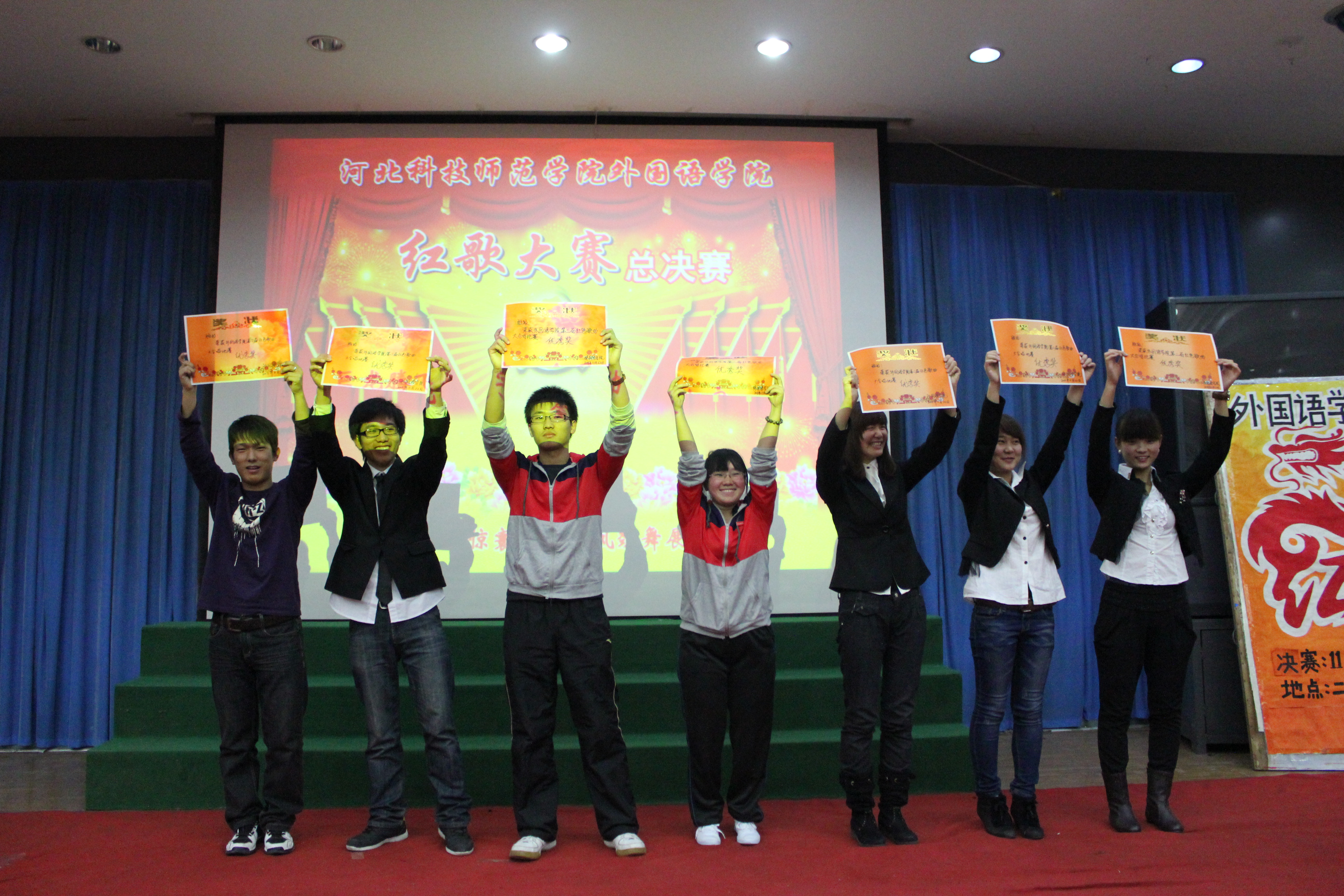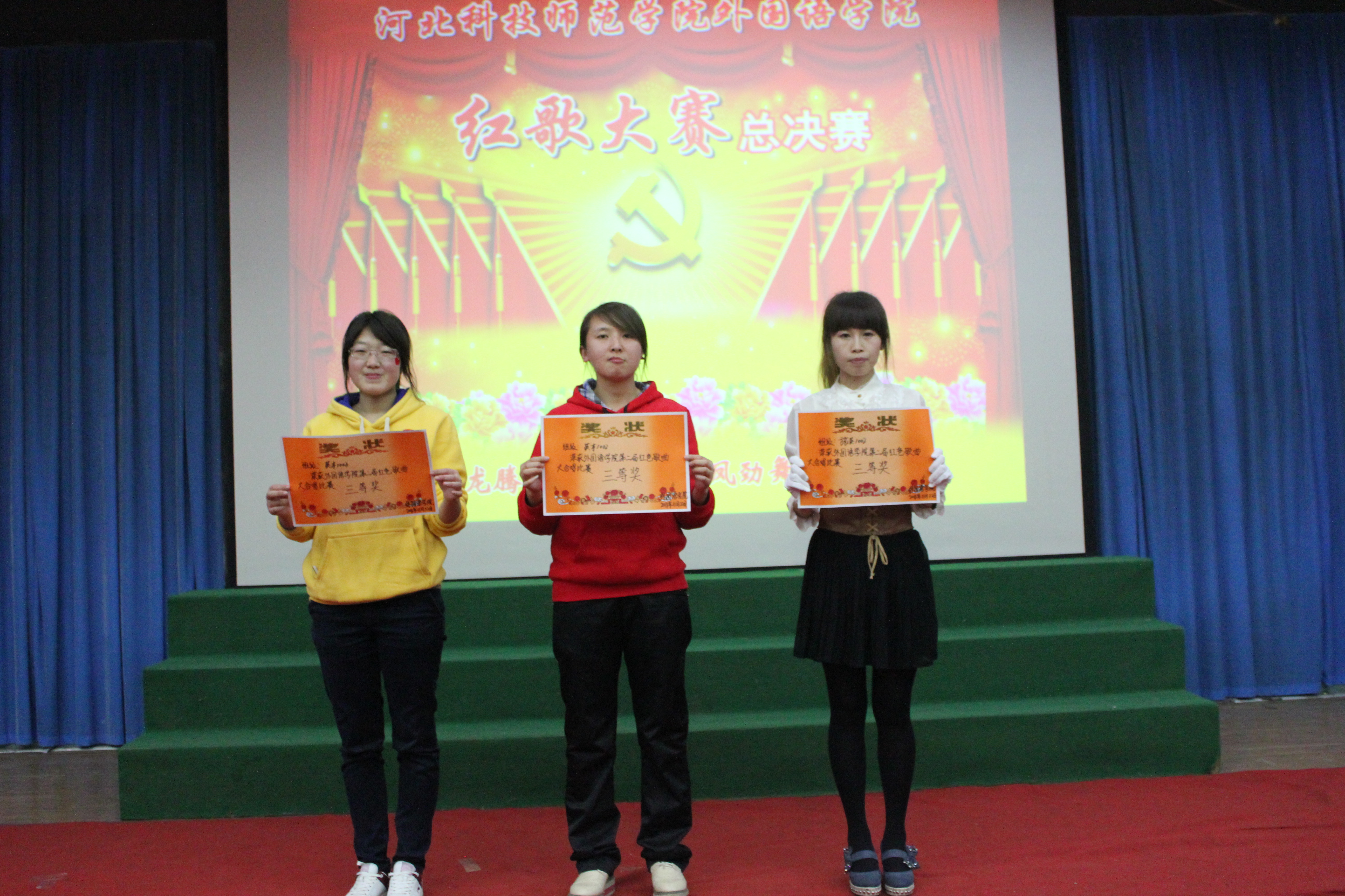 为了回顾过去,缅怀先烈,谨记中华民族的光荣历史,太阳成tyc33455cc于2011年11月22日在综合楼报告厅开展了以“唱红歌,颂祖国”为主题的红色经典歌曲大合唱比赛的决赛。经过初赛的比拼,有13个班级进入了决赛。担任本次比赛的评委有游建民副院长、崔海英副院长,以及办公室、学工办和各教学部的老师们。