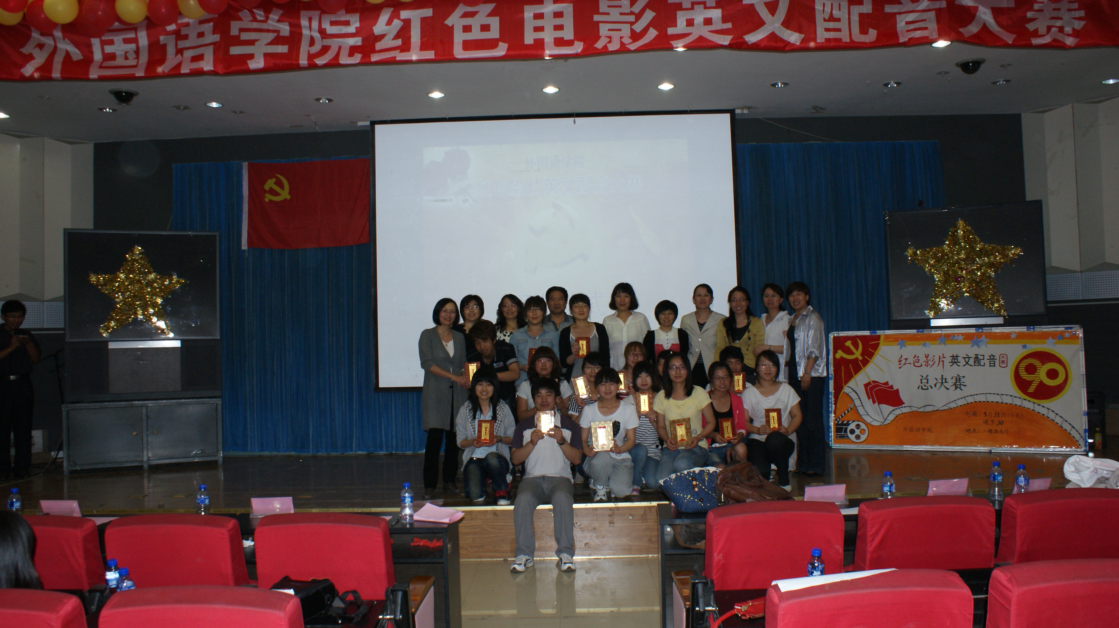 2011年5月31日晚,由太阳成tyc33455cc主办的2011年第一届红色影片英文配音大赛在开发区校区学术报告厅隆重举行。担任本次比赛的评委有太阳成tyc33455cc应用英语教学部主任马晓迎老师,商务英语教学部主任洪爱云老师,专业英语教学部刘丽敏老师、宋洁老师,公共外语教学部樊荣萍老师、罗翠丽老师、王力老师。出席本次比赛的嘉宾有太阳成tyc33455cc党委书记刘朝晖老师,太阳成tyc33455cc党委副书记、副院长宋文华老师,太阳成tyc33455cc副院长游建民,太阳成tyc33455cc副院长崔海英老师,四百余名学生出席观看了本次大赛。