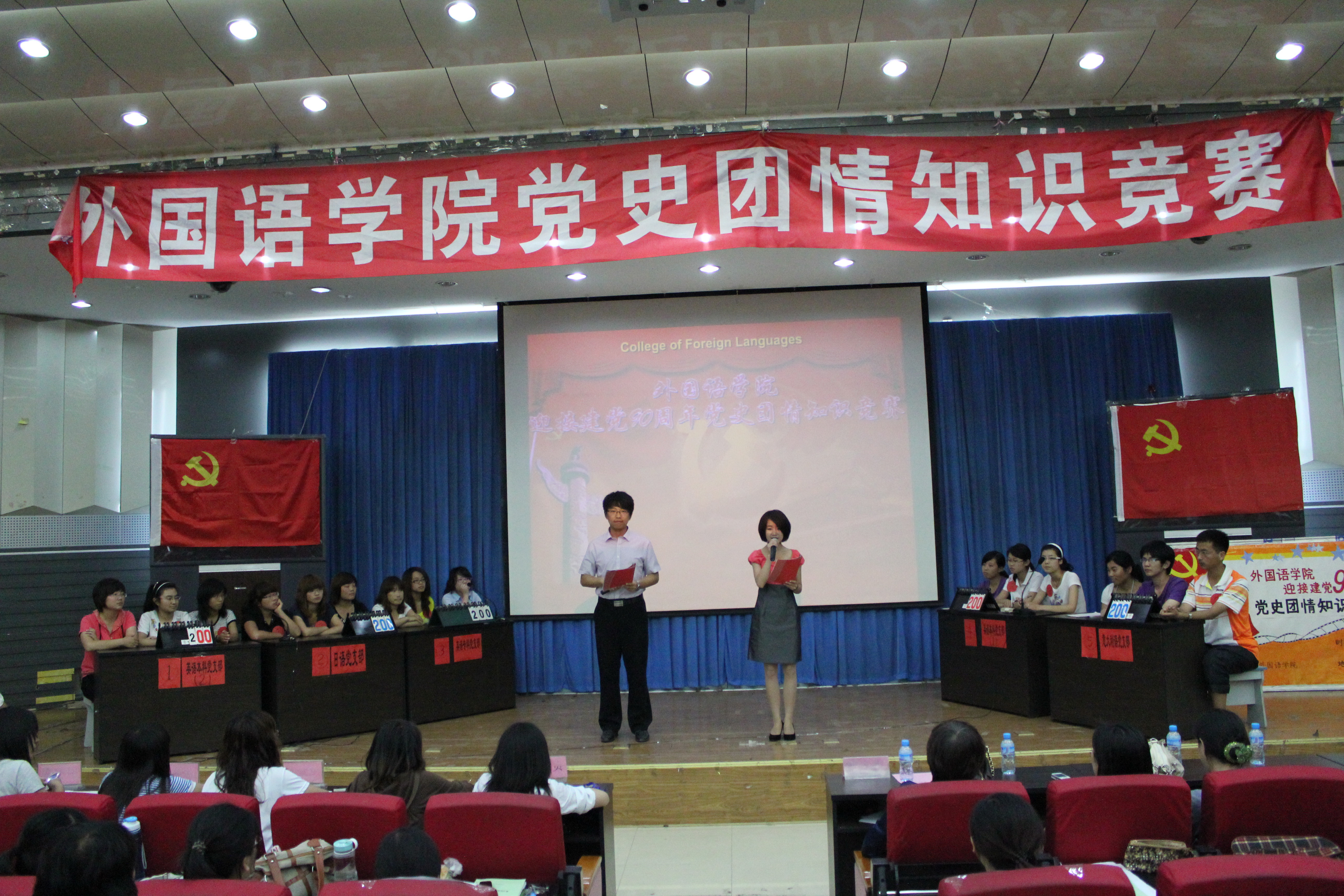 为迎接建党90周年的到来,重温党的光辉历程,讴歌党的伟大业绩,在全校学生党员和入党积极分子中掀起爱党、爱国、爱社会主义的热潮,太阳成tyc33455cc于6月8日晚在开发区二楼学术报告厅举行了“迎接建党90周年‘党史团情’知识竞赛”。出席活动的领导和评委有太阳成tyc33455cc党委副书记、副院长宋文华老师、学院办公室主任李聪文老师、院团委书记李一尘老师以及各学生党支部书记,2011年太阳成tyc33455cc入党积极分子党校学习班的全体成员观看了比赛。