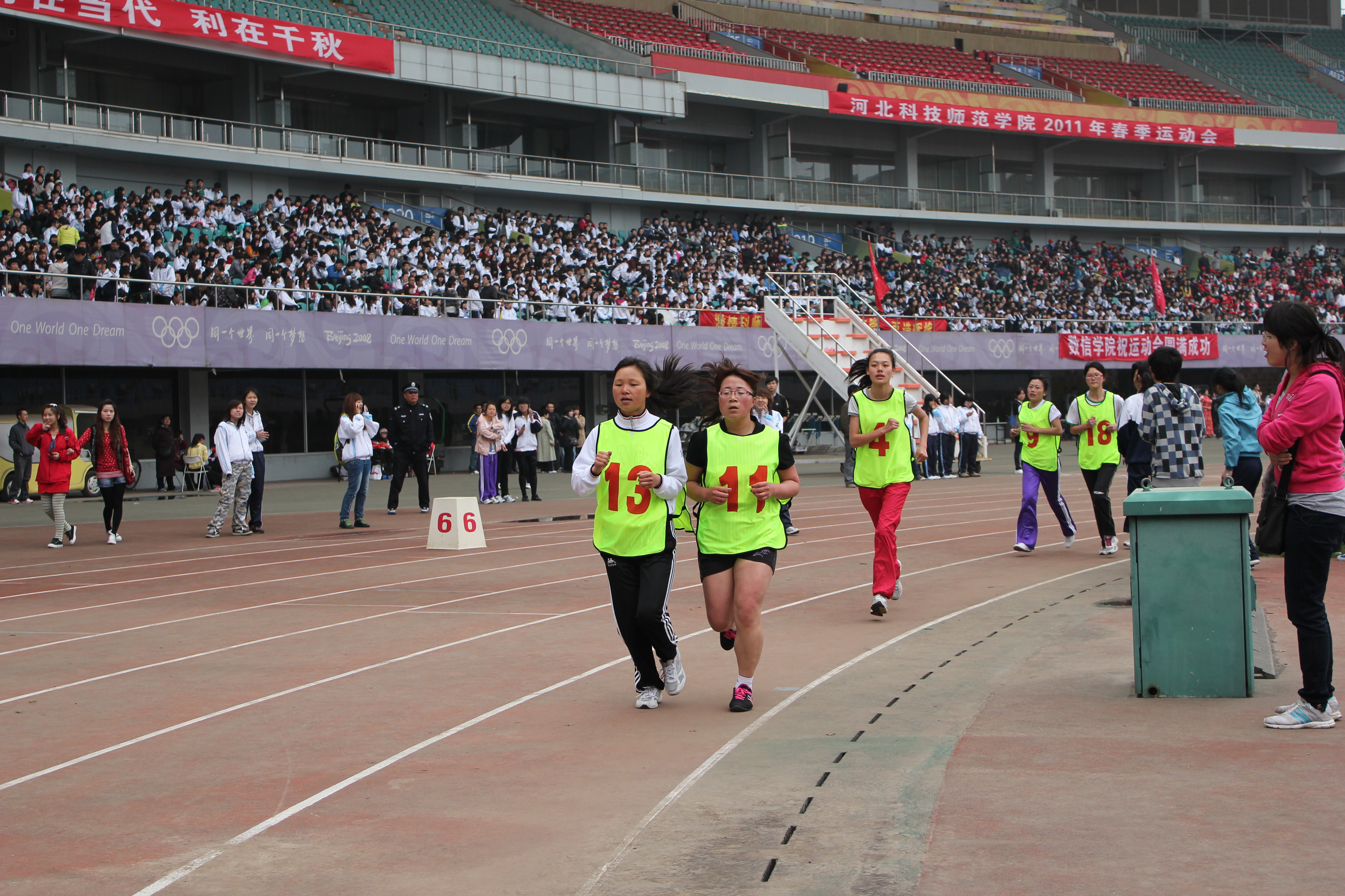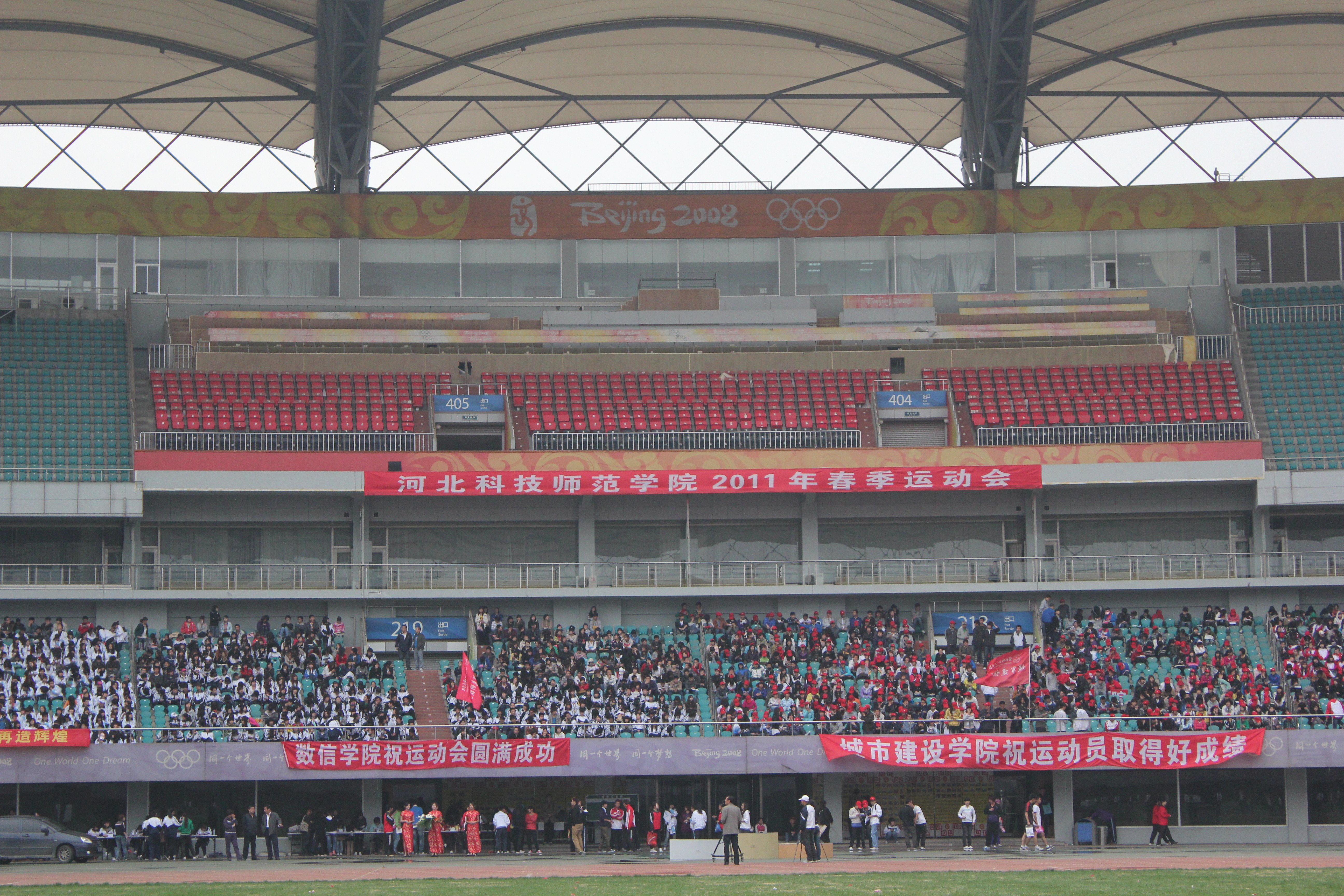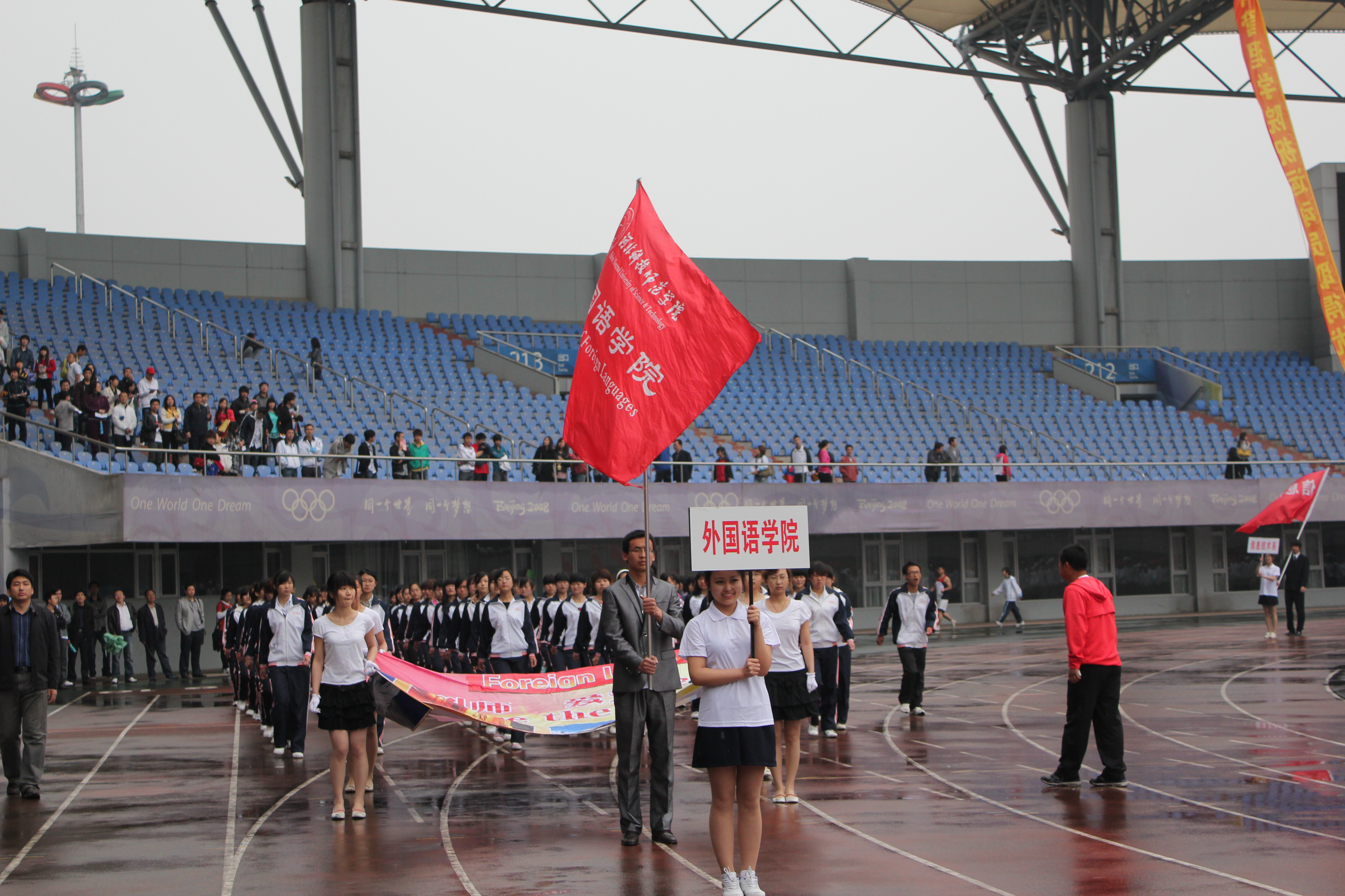 2011年5月5日至6日,我校秦皇岛校区2011年春季田径运动会在奥体中心体育馆隆重举行。由我院700余名学生参与表演的团体太极拳成为开幕式的重头戏,受到与会领导及师生们的好评。运动会上我院健儿们努力拼搏勇创佳绩,一举夺得了团体总分第七名的好成绩。其中10级意大利语的张雪召同学获得男子三项全能第一名的好成绩,10级旅游英语的吴立川获得男子标枪第二名,10级旅游英语的贾丹丹获得女子1500米第三名的好成绩。学生们力争上游,教工们也不落后。我院教师在教工男子4×100接力赛中勇夺第二名,刷新了我院在此项赛事中新的记录。另有多名女教师在各项比赛中获奖。