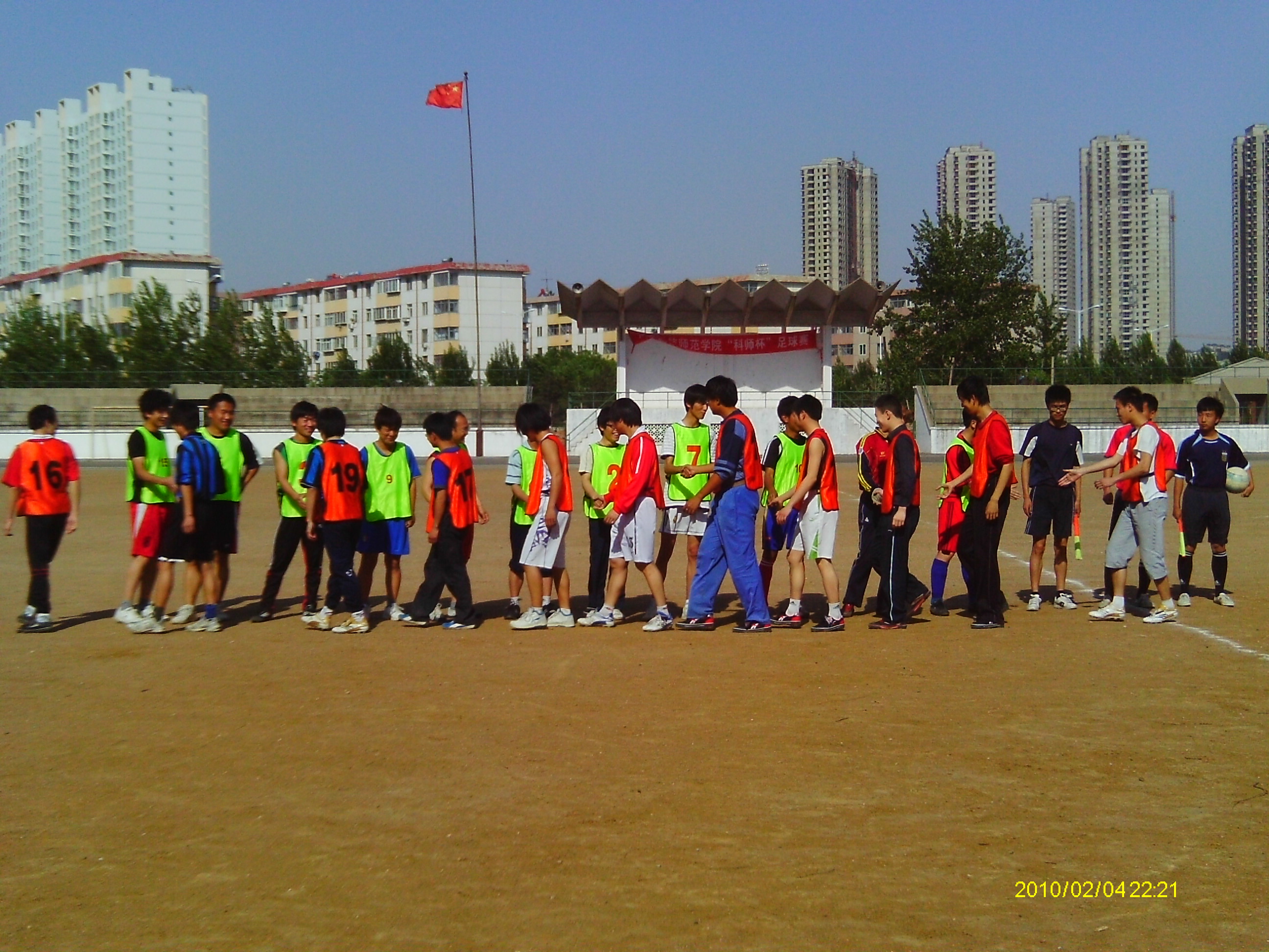 两队握手致意(绿色队服为我院球员)