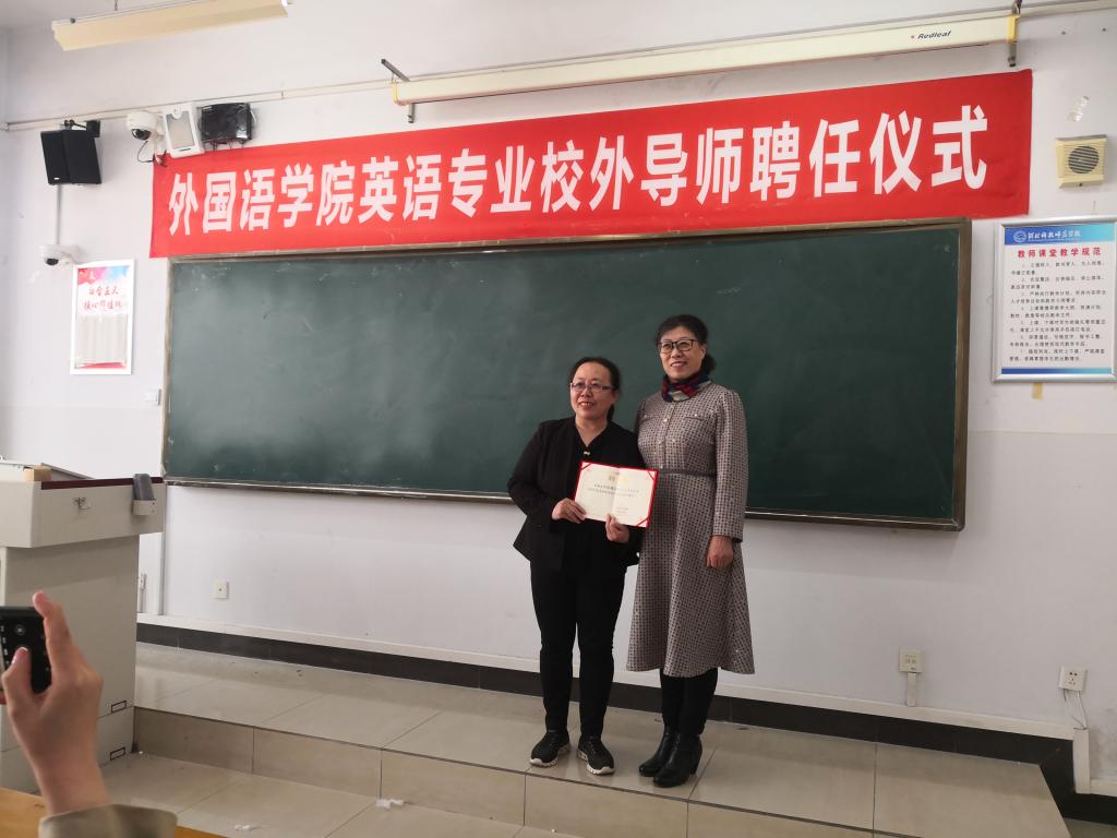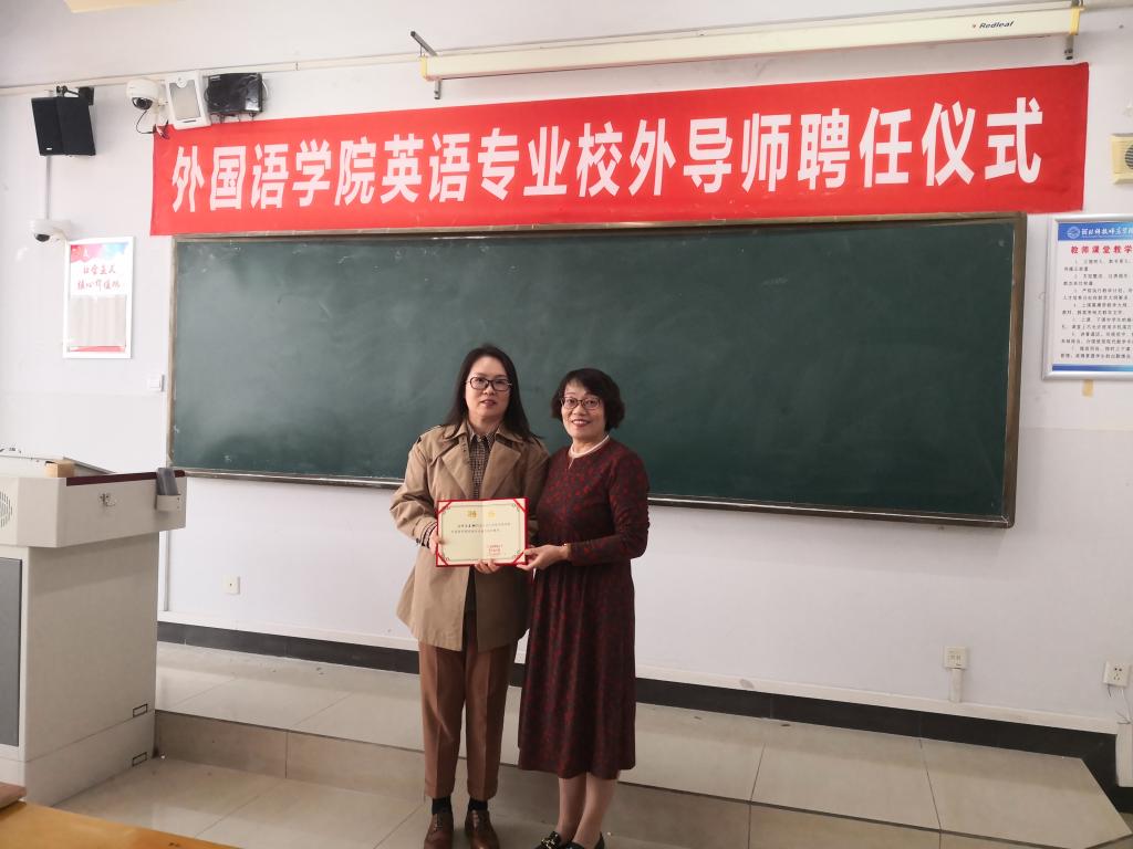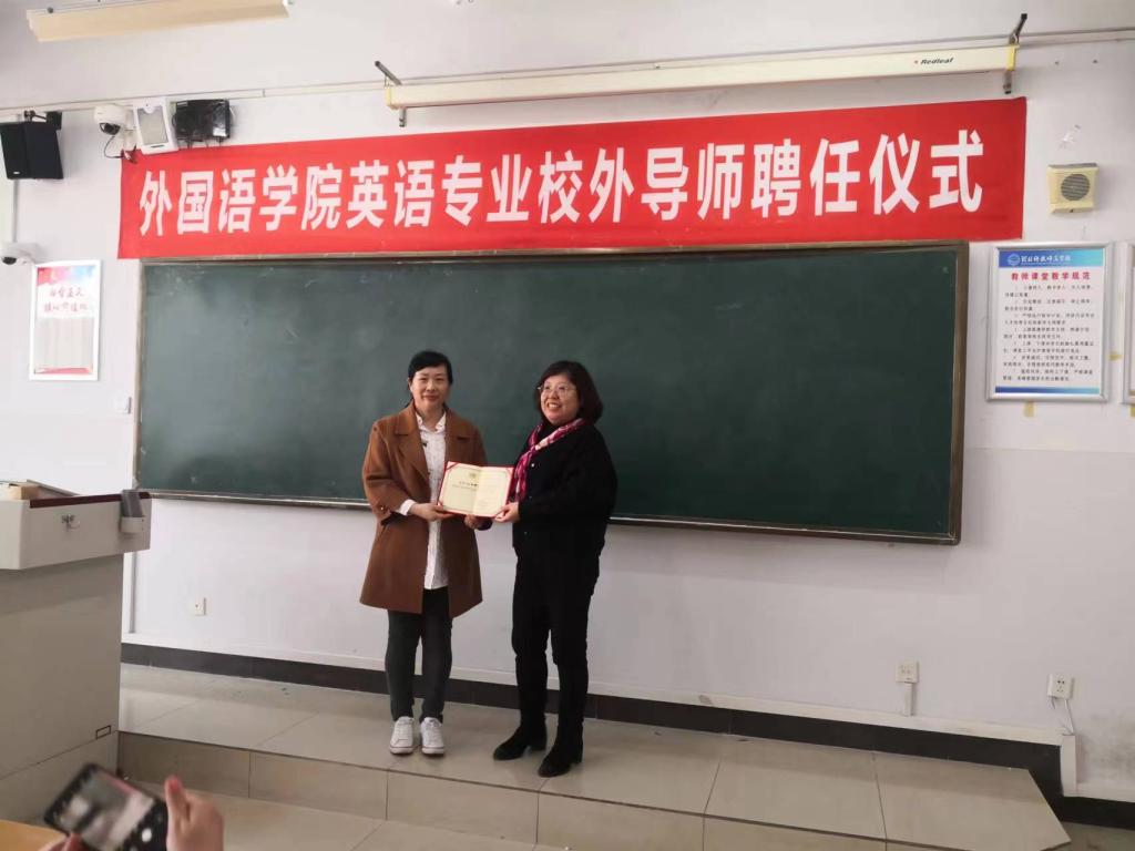 近几年来,四位校外导师通过太阳成tyc33455cc“名师进课堂”、“名师大讲堂”、“名师工作坊”等系列活动指导英语师范生的教师教育课程学习、微格实训、教研活动等,积极参与我院师范生的协同培养。太阳成tyc33455cc领导班子成员一一为四位导师颁发了证书,崔院长代表太阳成tyc33455cc衷心感谢各位导师在协同育人机制下为我院师范生培养做出的巨大贡献,也希望各位校外导师继续参与我院师范生的培养工作,共同提升英语师范生的培养质量。