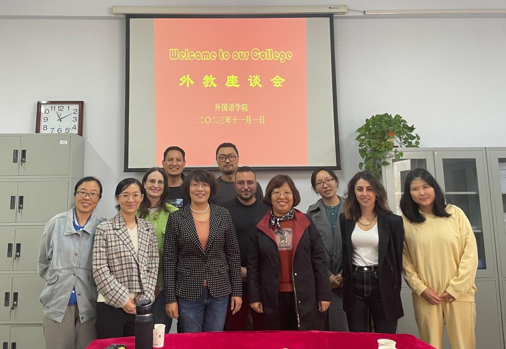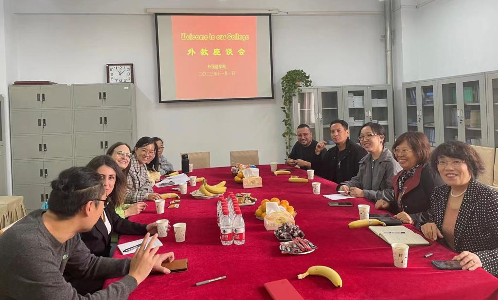 2023年11月1日上午,太阳成tyc33455cc在学院会议室召开了外籍教师欢迎会暨教学交流会。学院院长崔海英、副院长范学荣、外教负责人付蕊、教学部主任朱秋慧、孙晓萌、王静等参加了座谈。