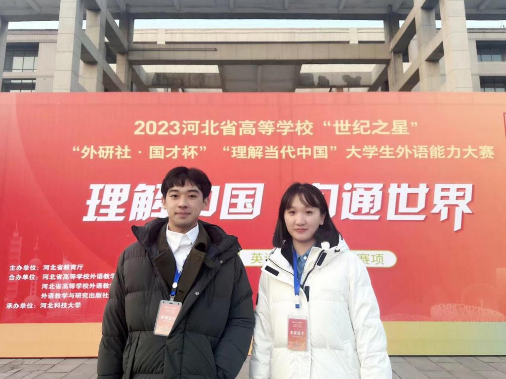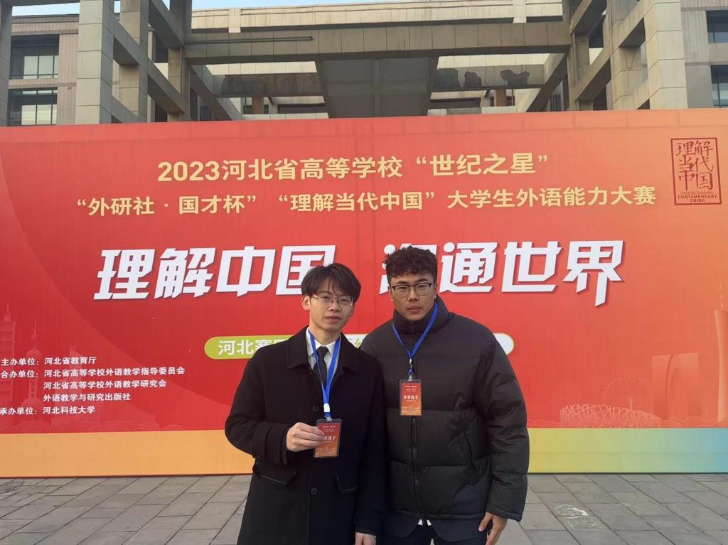 2023年11月11日,河北省高等学校“外研社· 国才杯”“理解当代中国”全国大学生外语能力大赛河北赛区英语演讲、口译赛项在河北科技大学落下帷幕。从赛前培训、校内选拔赛到现场决赛,大赛历时三个月,经过激烈角逐,我校太阳成tyc33455cc戴宇飞荣获口译大赛金奖,代表河北省晋级国赛;农学与生物科技学院周明超荣获铜奖。职业教育研究院胡开升荣获演讲大赛金奖,代表河北省晋级国赛;体育与健康学院李瑛钦荣获银奖。