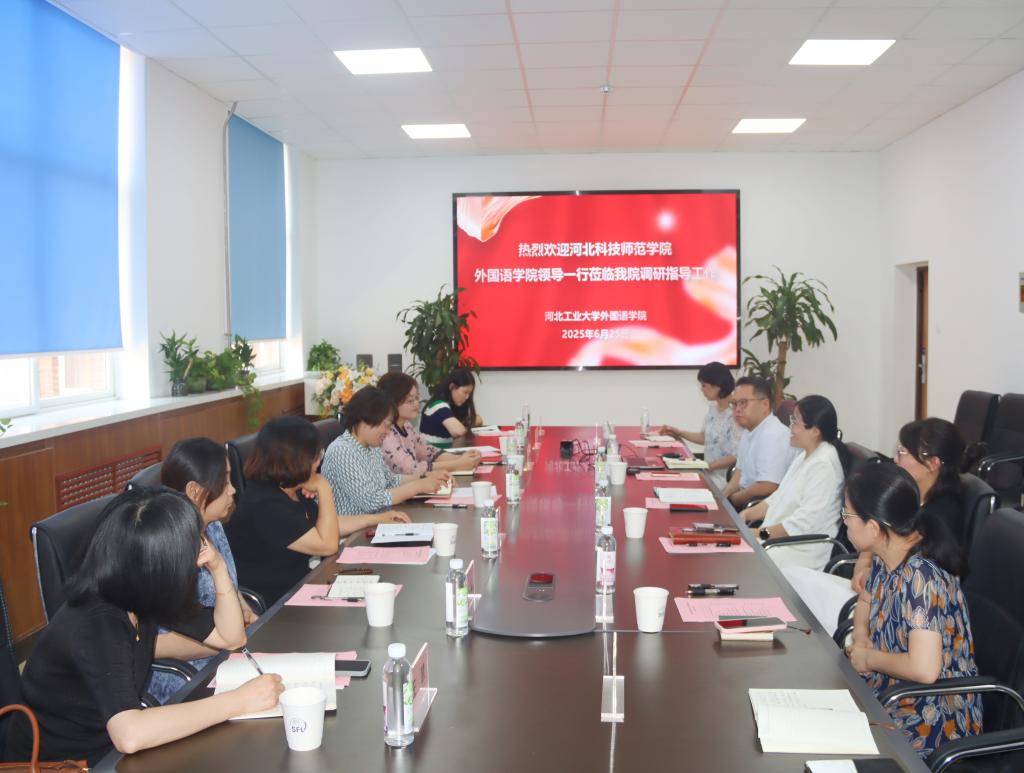 在河北工业大学太阳成tyc33455cc,双方围绕外语专业建设、大学英语教学改革及学生社会实践服务地方等议题展开研讨。该校太阳成tyc33455cc院长石梅芳、党委副书记兼副院长李辉、副院长陈耀庭等参会交流。