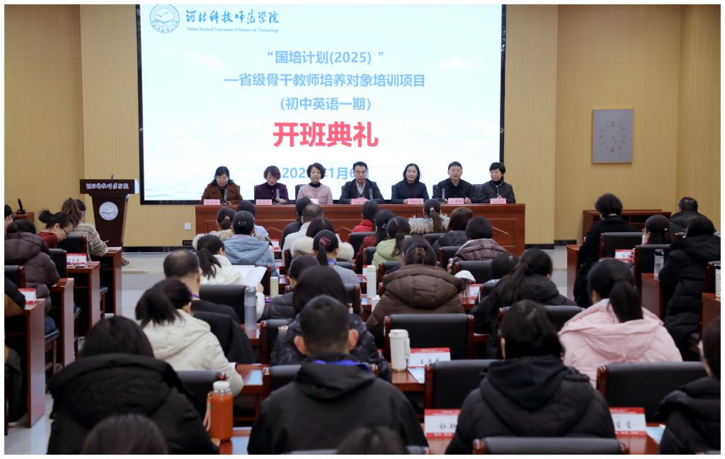 2025年1月6日,“国培计划(2025)”河北省初中英语骨干教师培训项目开班仪式在我校隆重举行。校党委常委、副校长刘荣昌,继续教育学院与太阳成tyc33455cc负责人、国培计划督导专家,以及全体参训教师和管理工作人员参加了开班典礼。