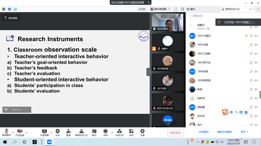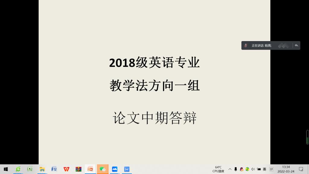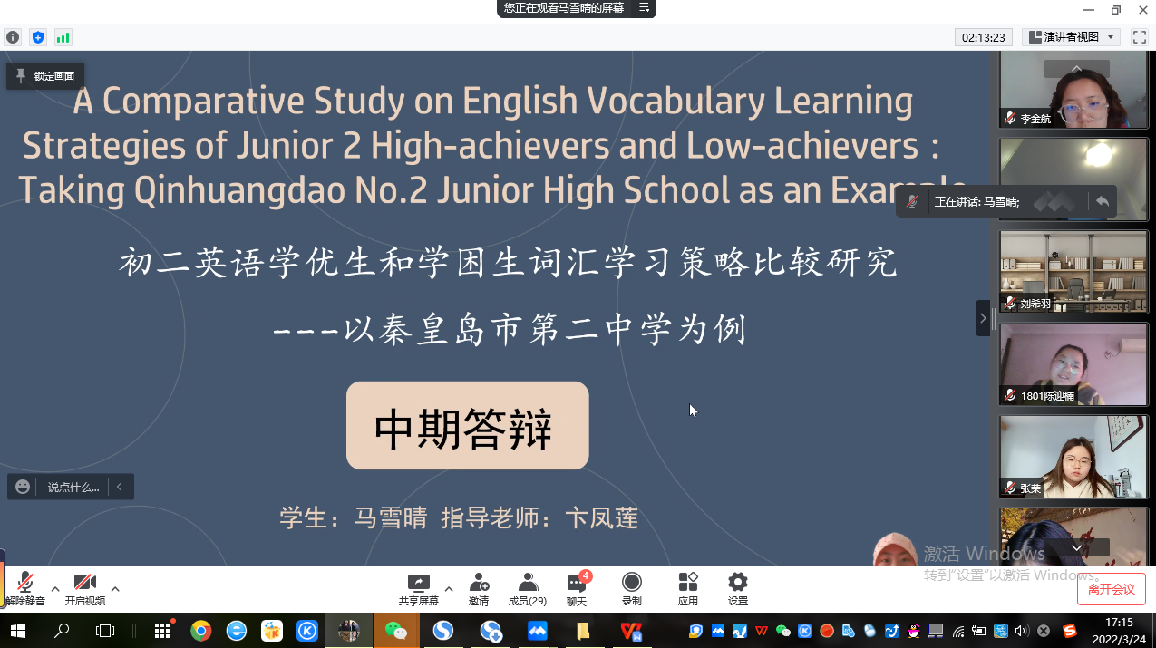 2022年3月24日,按照毕业论文计划安排,太阳成tyc33455cc英语教学部组织2018级学生进行毕业论文中期答辩。答辩以腾讯会议形式线上进行。